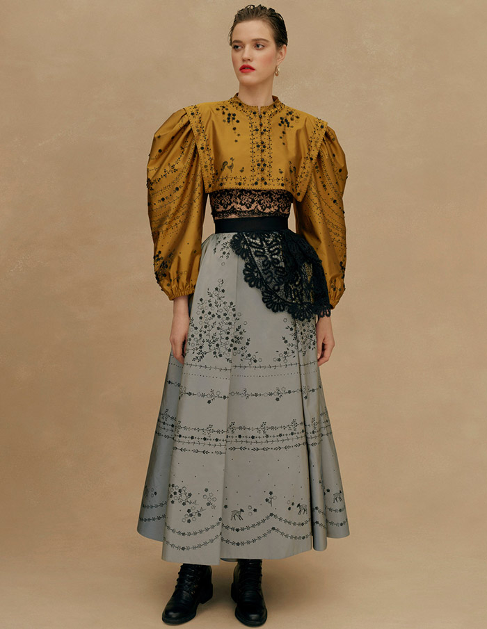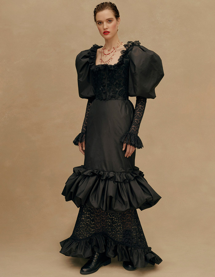 collection d'Ulyana Sergeenko pour la saison chaude printemps-été 2026 est différente des œuvres passées du créateur. Ici, nous voyons davantage l'influence du gothique victorien, de l'austérité et de la force, et ce n'est qu'alors que nous remarquons les motifs ethniques du costume russe et de l'artisanat populaire.