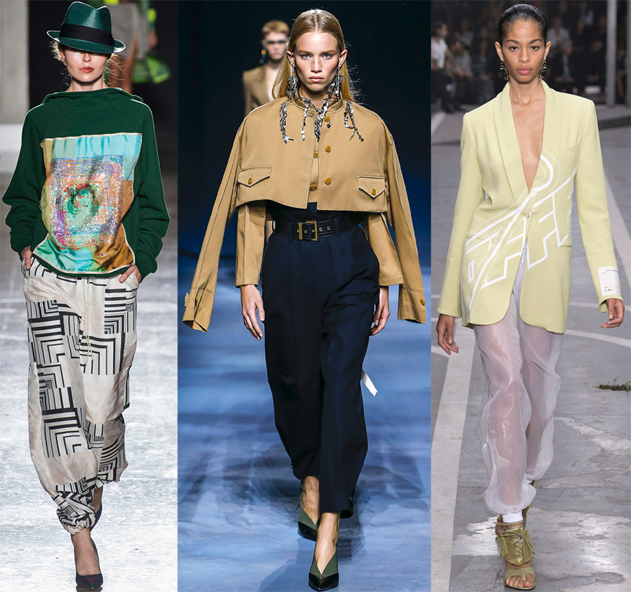 Chanel, Carolina Herrera, Alexander McQueen Vêtements de sport pratiques et confortables, et donc les rayures, plus familières sur les pantalons de sport, orneront longtemps les pantalons de tous les modèles et même les jeans.