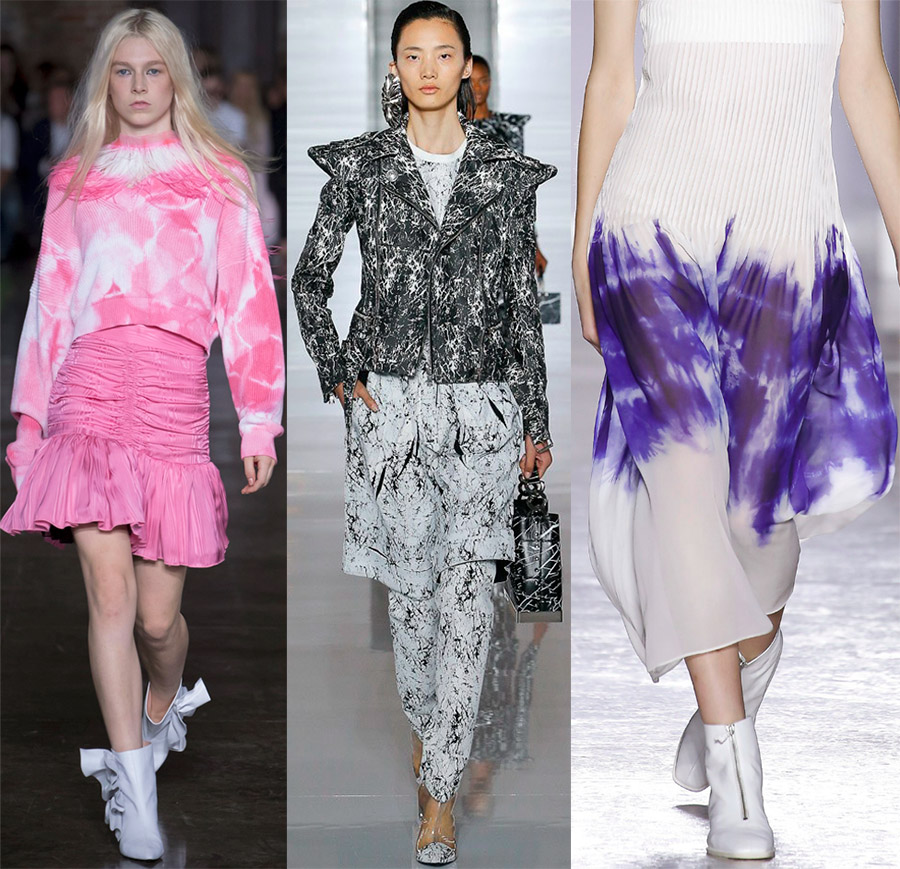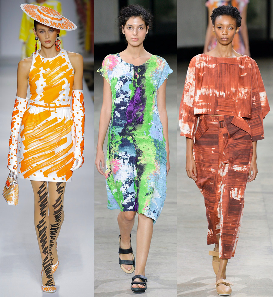 L'imprimé éclaboussé, les tissus délavés sont l'une des principales tendances. Si auparavant une tache de peinture ou d'encre sur une robe était perçue comme un désastre, les concepteurs proposent maintenant de le faire exprès, mais il est préférable d'appliquer des taches, des taches et des traits légers sur le tissu à l'avance, comme si votre bébé avait dessine ses premiers dessins sur la robe ou la jupe au feutre.