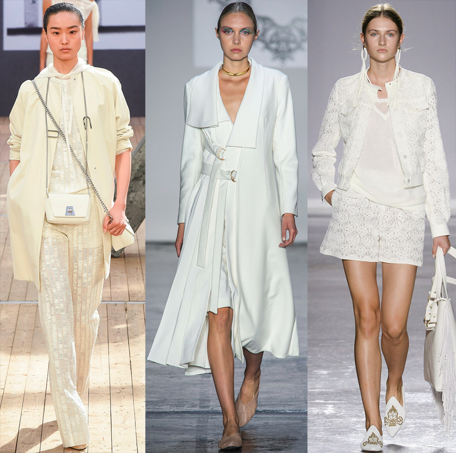 Blanche. Il ne peut y avoir d'été sans blanc. Sur le podium, il y avait des collections qui contenaient jusqu'à 70% des tenues en blanc. Et cette couleur, comme vous le savez, a différentes nuances. Par exemple, vous pouvez vous habiller dans des couleurs crème, lait et crème de la tête aux pieds.