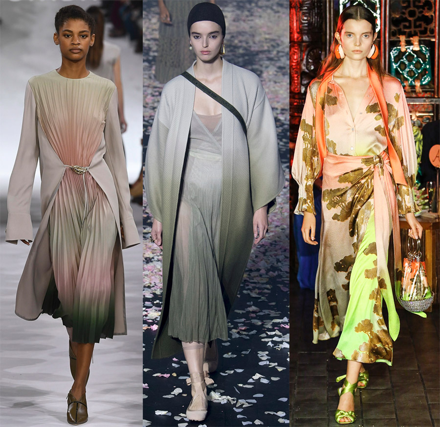 Saint Laurent et 2 Ashish Pente. Enfin, y aura-t-il un dégradé ? Certainement. L'effet des débordements de couleurs est de retour dans la tendance. Les transitions en douceur sur les tenues Oscar de la Renta, Christian Dior et Giada sont particulièrement belles.