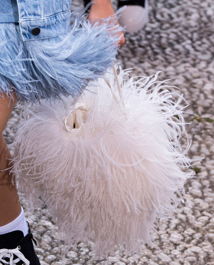 En plus des options de fourrure, Simonetta Ravizza propose des modèles particulièrement moelleux avec des plumes. Un sac à plumes est une option de soirée et est encore plus vulnérable en termes de sécurité. Les sacs en fourrure dépendent beaucoup de la propreté de leur maîtresse, et les accessoires avec des plumes nécessitent encore plus d'attention.