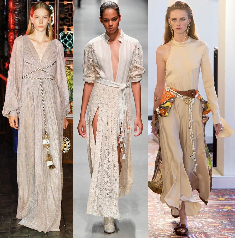 Tissus légers et plastiques, transparents et translucides, ajourés et scintillants sont mis en avant. La soie, la mousseline, la dentelle, le satin, l'organza, la mousseline émerveillent d'une beauté et d'une perfection exquises...