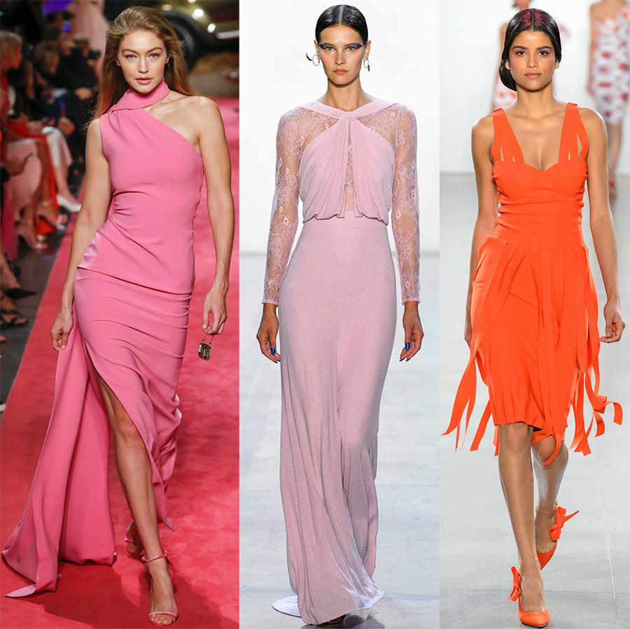 Malgré la "directive" de l'institut de couleur Pantone, les stylistes ont choisi des couleurs rose et corail pour les robes, des jaunes chauds, dorés et chauds. Les couleurs marron, les tons pastel, les couleurs rouge, blanc et noir se sont avérées très appréciées.