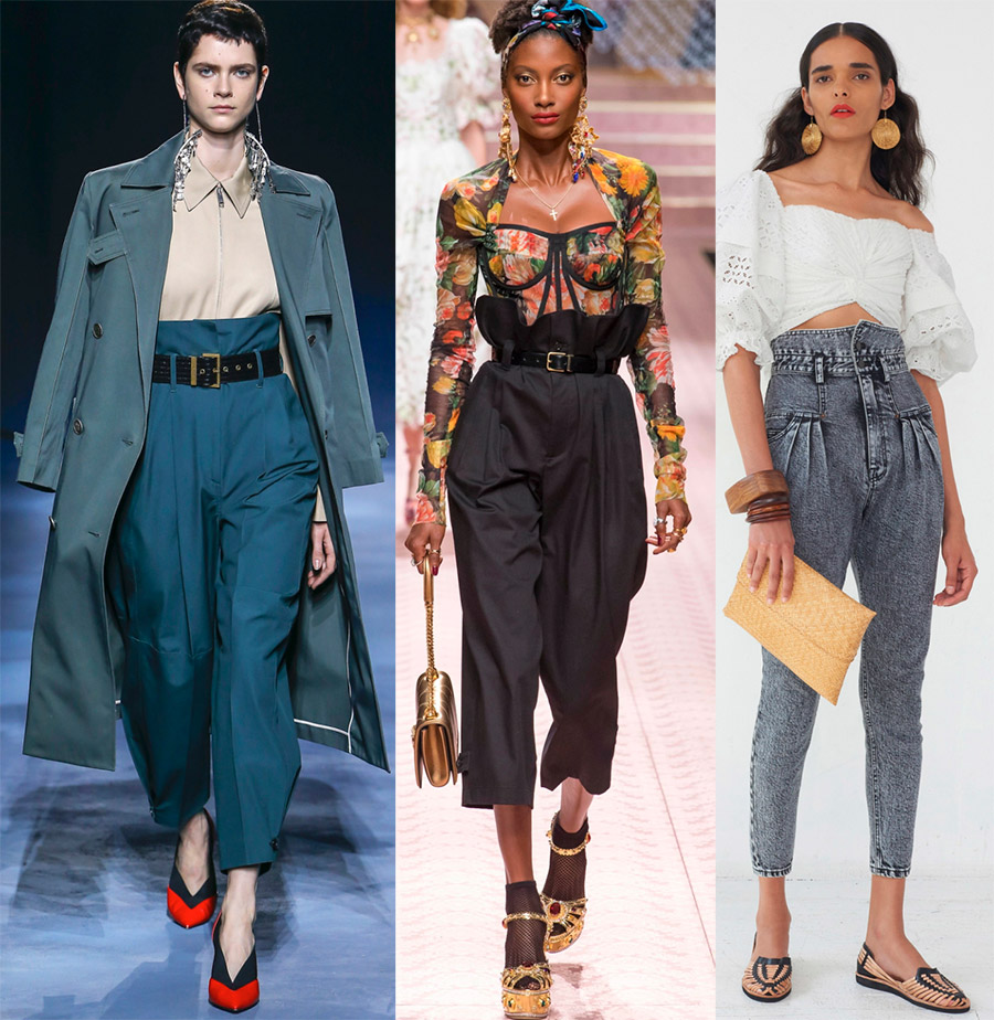 tendance de la saison chaude 2026... Il y avait de nombreux modèles sur le podium, dont la taille était relevée au-dessus de sa ligne principale, tandis que la taille elle-même était soulignée par une ceinture ou une ceinture, rassemblant le bord supérieur du pantalon dans de nombreux plis.