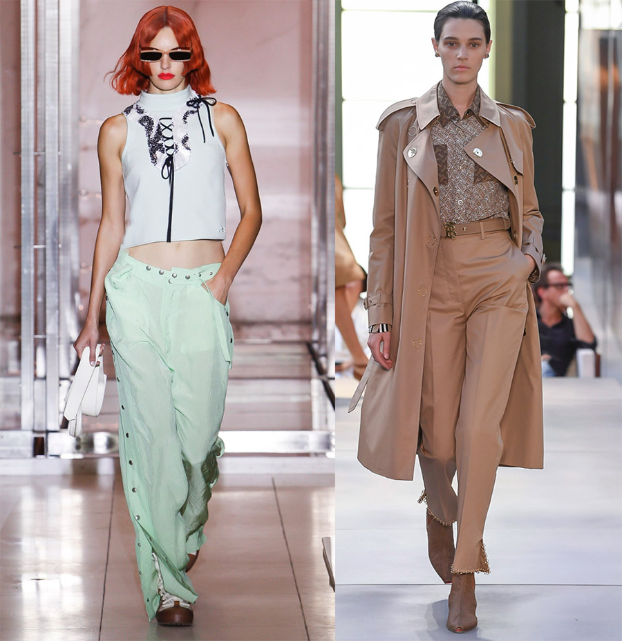 Courrèges, BurberryEt enfin, un pantalon, qui en soi peut être qualifié de spécial. Ils ne sont pas nombreux, mais ils le sont. Peut-être parmi eux, ceux qui deviendront les plus populaires dans les prochaines saisons.