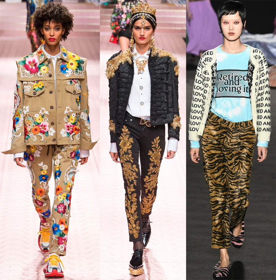 L'impression ajoute de la luminosité et ne cesse de surprendre. En plus des modèles laconiques dans les tons monochromes et bruns atténués, vous pouvez voir les couleurs et les images les plus extraordinaires sur les pantalons.