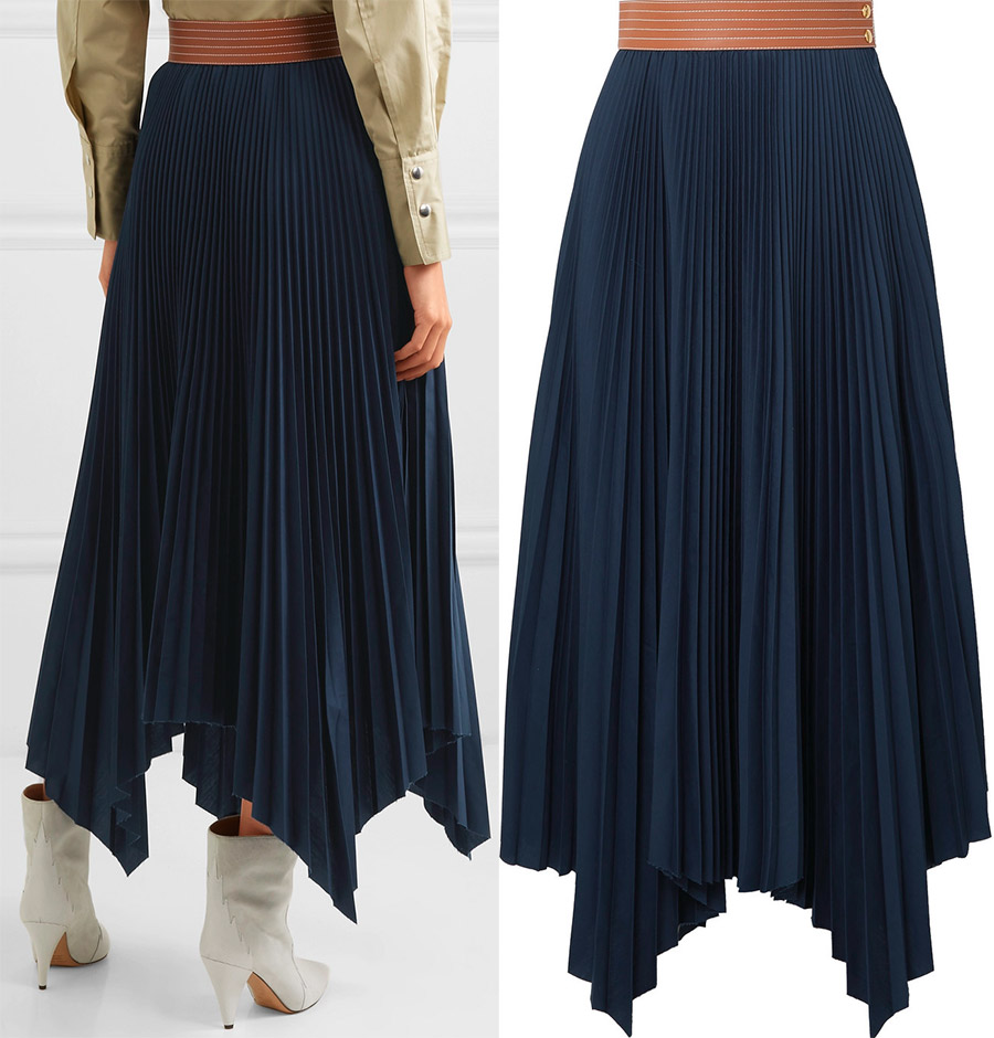 Le plissage et l'asymétrie fonctionnent très bien ensemble, ils se complètent même. Vous avez juste à essayer de trouver de telles jupes.