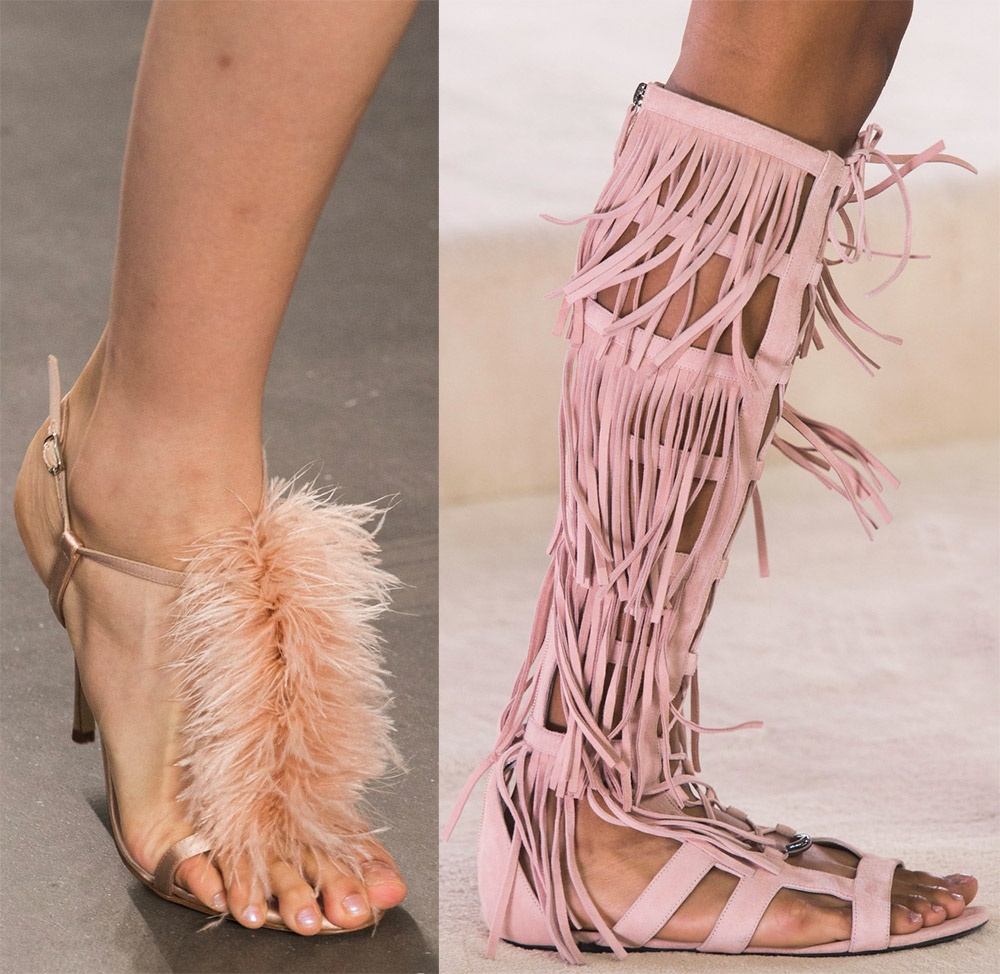 Les plumes, les franges et les glands se retrouvent dans de nombreux looks et styles, les styles western et boho ne peuvent être complets sans eux. En plus des vêtements, ils sont également utilisés pour décorer les chaussures, et leurs différentes parties : talons, empeigne, sangles. Ces chaussures sont souvent perçues comme quelque peu excentriques, mais en même temps perceptibles.