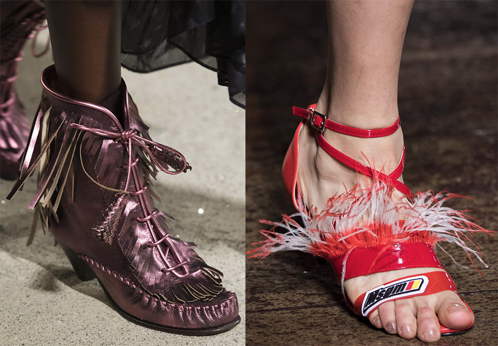 Il est impossible de ne pas faire attention à des styles aussi insolites, voire excentriques, comme par exemple dans la collection Acne Studios, ou les bottines Julien Macdonald, les sandales tressées Alberta Ferretti, les geta d'Alberto Zambelli, les luxueuses bottines à clou de la collection Alexander McQueen ou des sandales avec une montre à la cheville par Christian Cowan.