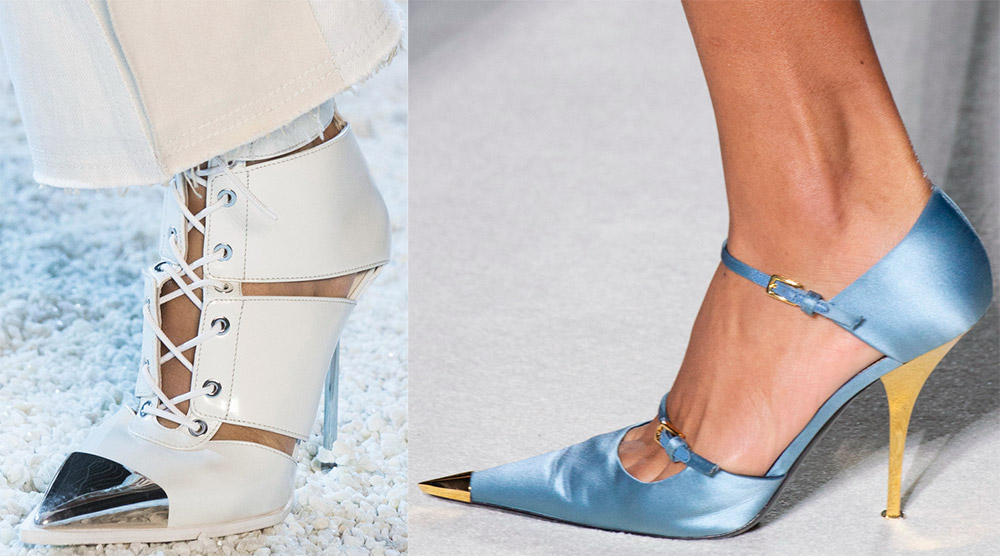 Alexander McQueen, Tom FordUne grande partie de ce que nous avons porté au cours de la dernière saison estivale peut être laissée dans votre garde-robe de chaussures pour la saison chaude à venir. Par exemple, des sandales à talon fermé, des mules à talons de différentes hauteurs et largeurs, des chaussures à lacets, des bottes à hauts larges. N'hésitez pas à laisser des chaussures décorées de volants ou de rubans tissés, elles sont également pertinentes pour la nouvelle saison.