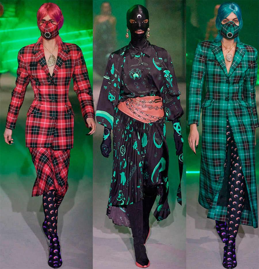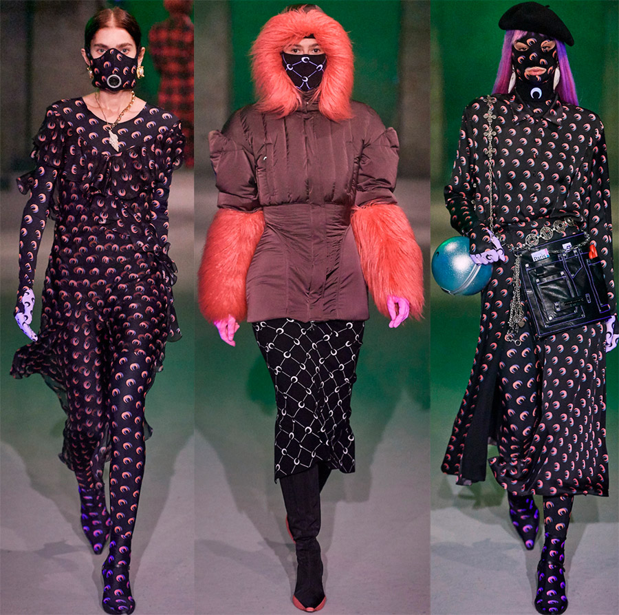 Marine Serre Pourquoi les masques de protection, les lunettes surdimensionnées, les voiles et les bonnets cagoules sont-ils populaires ? En fait, il y a plusieurs raisons à sa popularité. L'influence du style sportif sur les tendances de la mode. Les designers empruntent les éléments les plus confortables et les plus élégants à l'équipement des athlètes professionnels pour créer des looks de tous les jours. Ainsi, des bonnets cagoules et d'énormes lunettes sont venus dans nos armoires.