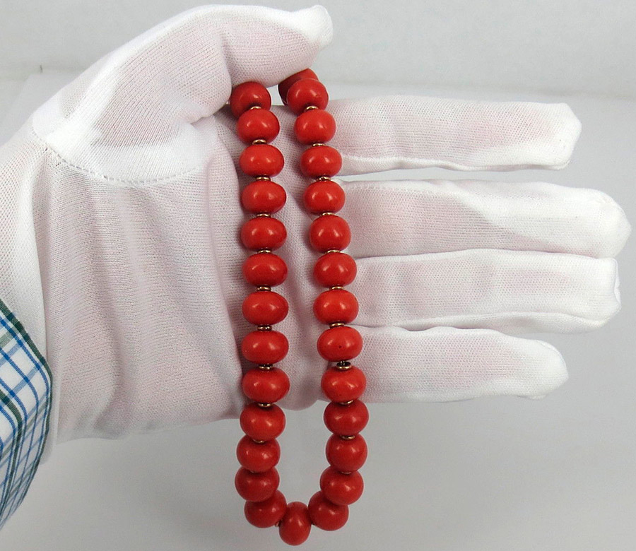 Le corail est synthétisé de diverses manières. Nous ne pouvons pas distinguer le synthétisé du naturel.Cela ne peut être fait que par un gemmologue spécialiste. Nous devrions nous contenter d'un examen attentif des signes extérieurs. Le vrai corail est rarement uniformément coloré. Il est rayé, et c'est sa particularité.