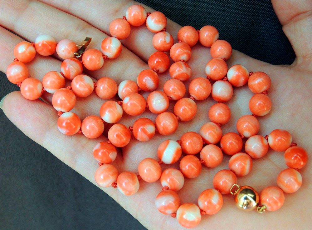 Les coraux ne sont pas seulement rouges. Parmi eux, il y a du blanc, du nacré, du rose chair délicat, du rose orangé, rappelant la couleur du saumon, il y a des rouges foncés, du rouge pourpre et même du noir et du bleu. Leur teinte dépend de l'éclairage et de la présence d'oligo-éléments dans l'eau de mer. Il existe plus de 300 nuances au total, mais les coraux rouges sont considérés comme les plus populaires en bijouterie.