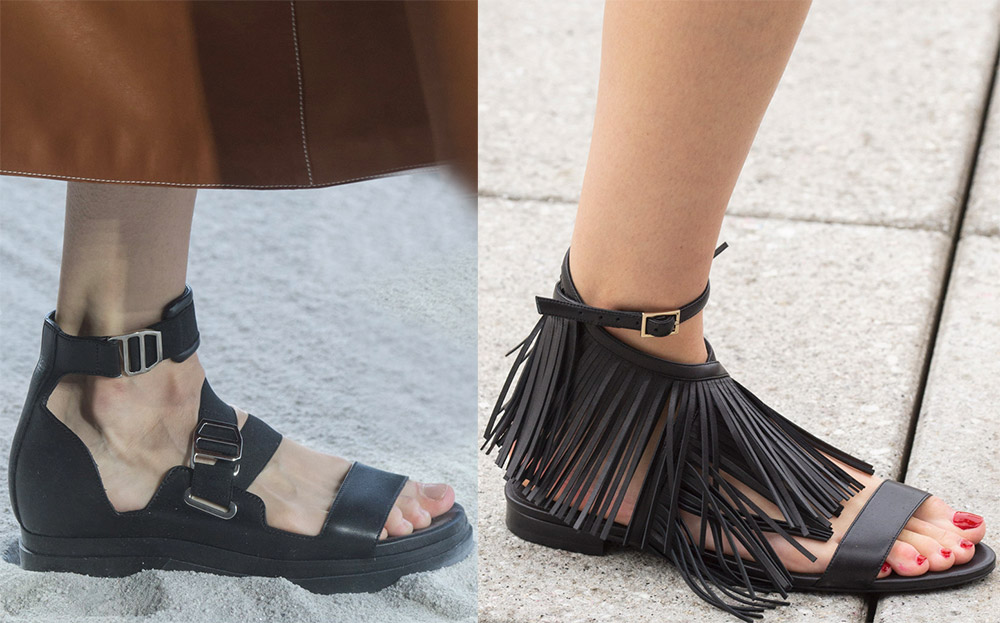Malgré le fait que la période estivale s'annonce lumineuse, parmi les nuances arc-en-ciel de sandales, il y a des couleurs vraiment sourdes, jusqu'au noir.