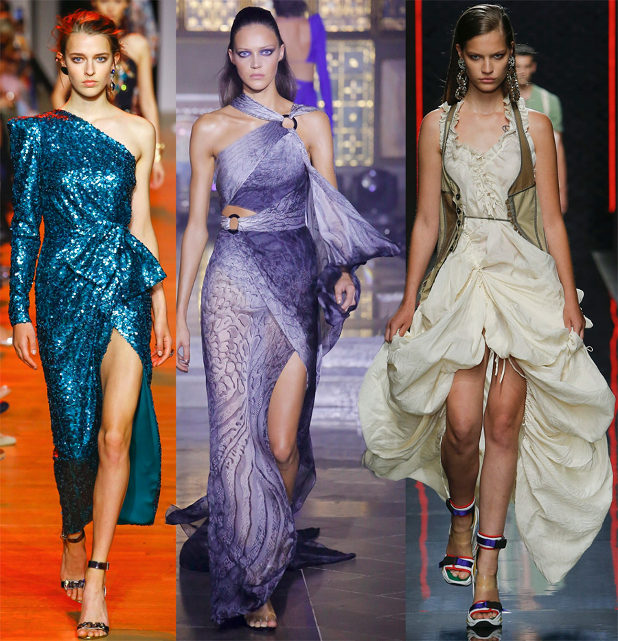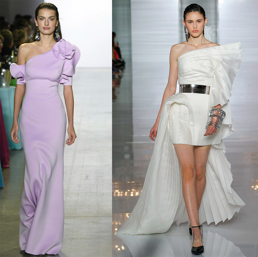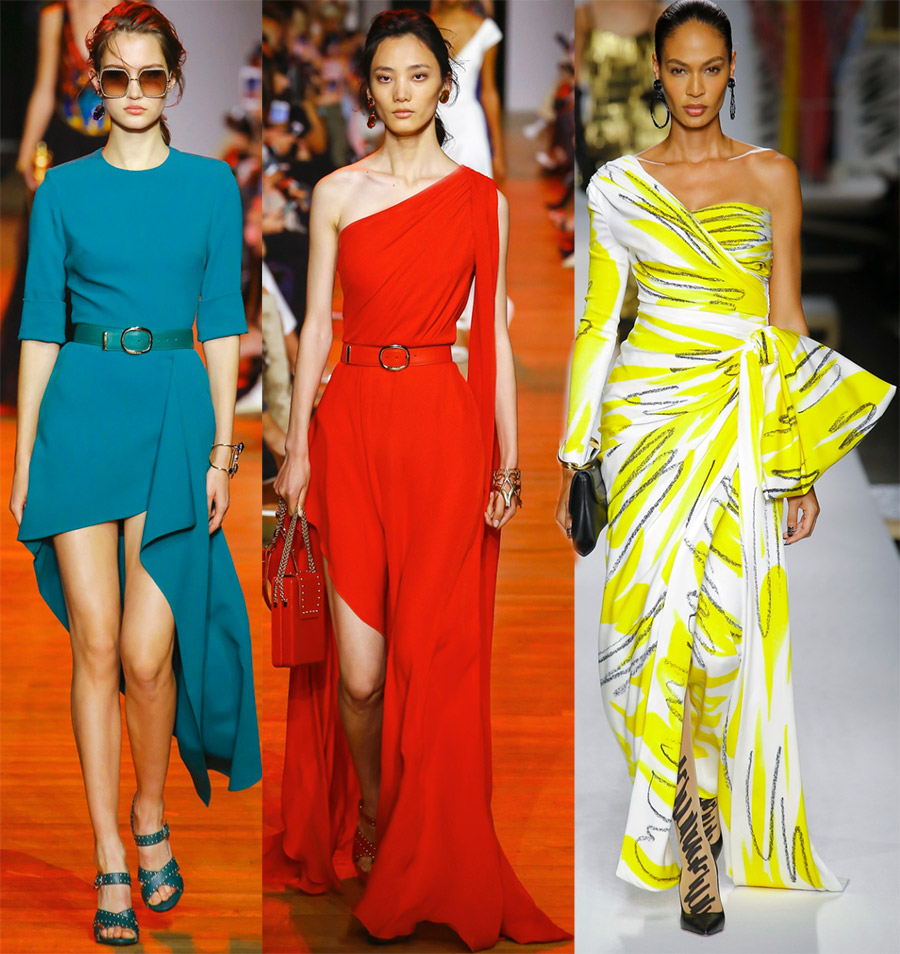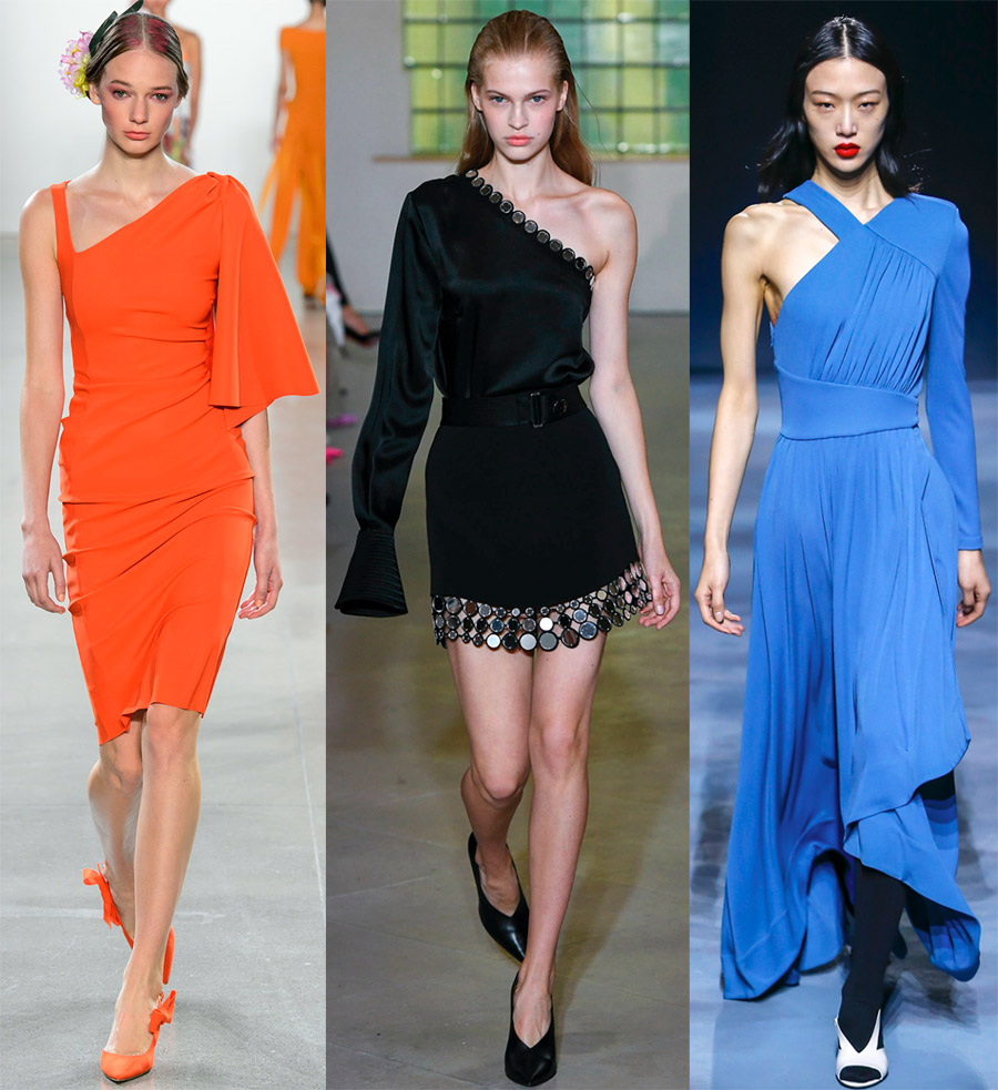 Elie Saab, Julien Macdonald, Dsquared2Les robes asymétriques sont toujours si expressives qu'elles nécessitent un minimum de bijoux et d'accessoires.