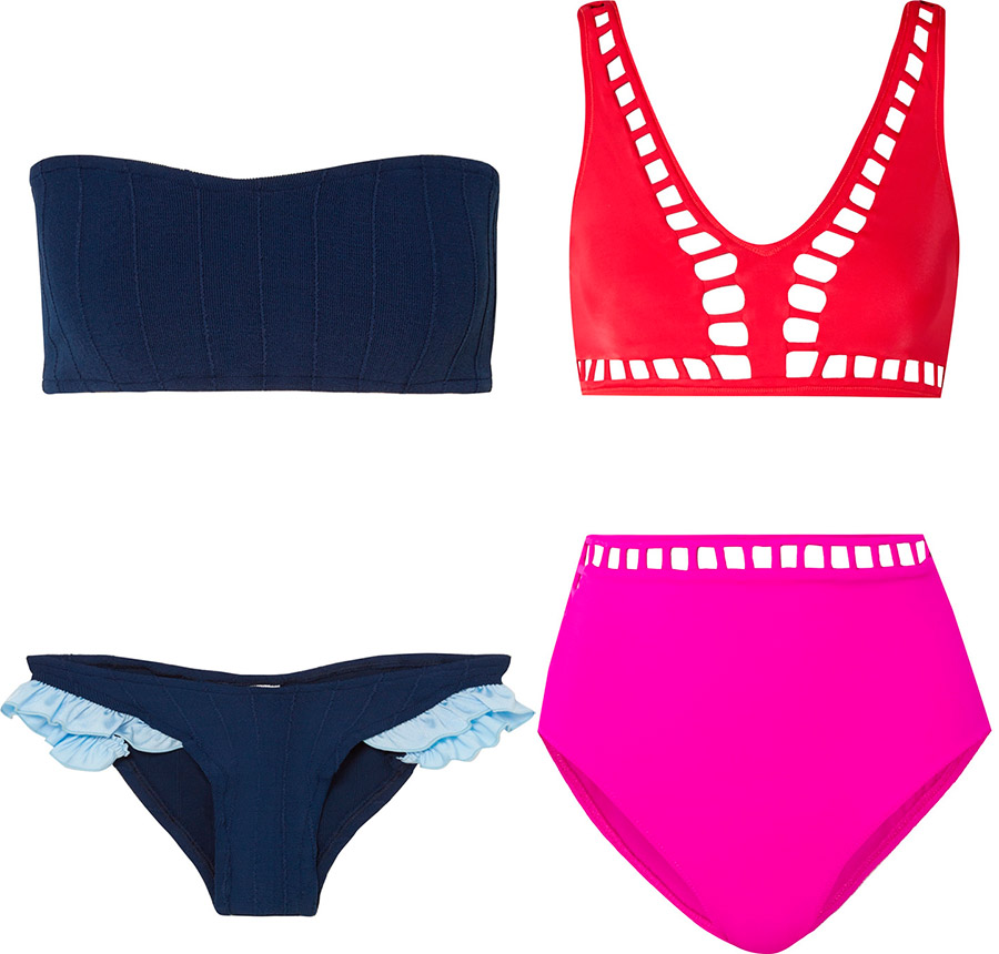 Stella McCartney, Norma KamaliTrikini révèle certaines parties du corps, mais crée en même temps l'impression d'une pièce unique. Vous ne perdrez pas de tels modèles en nageant, mais ils ne sont souvent pas adaptés au bronzage.