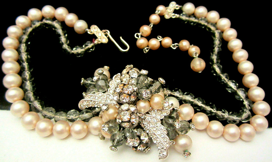 Miriam Haskell a voulu faire du bijou un accessoire indispensable dans un vêtement aussi prestigieux que de vrais bijoux.