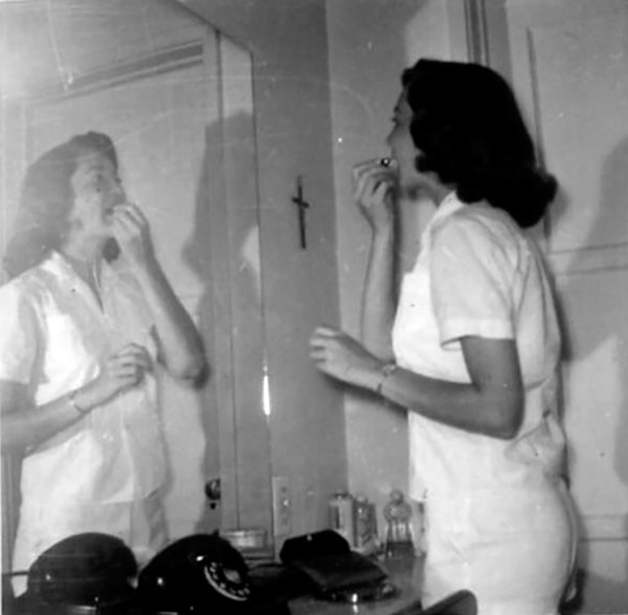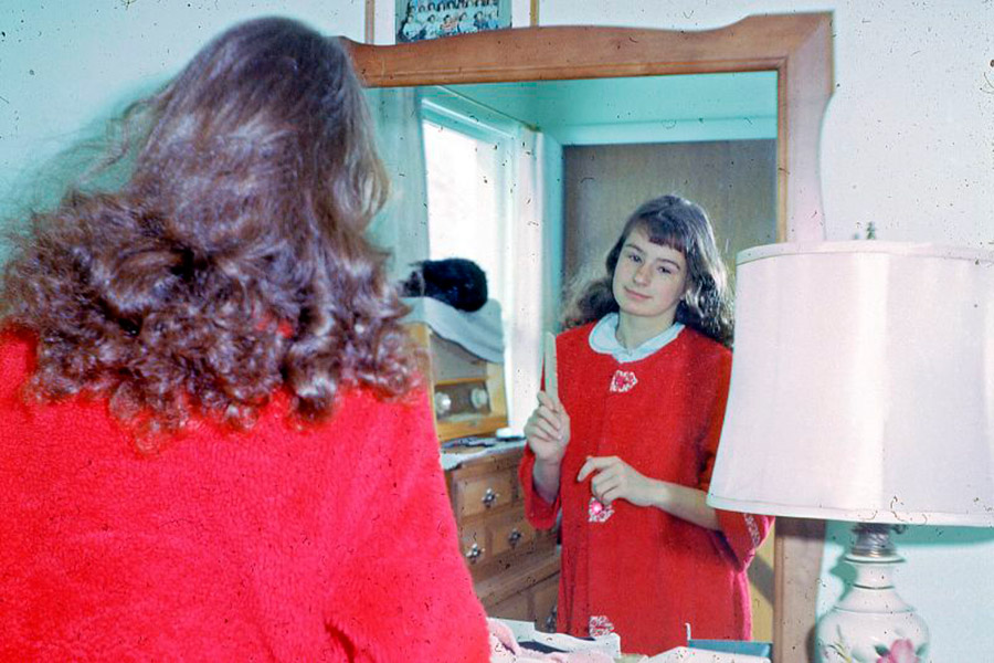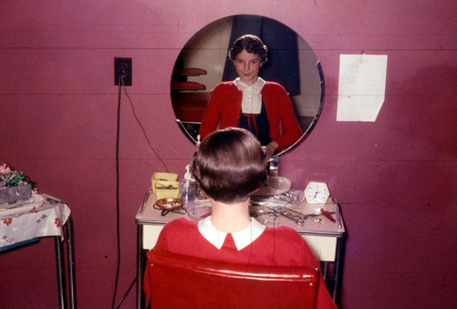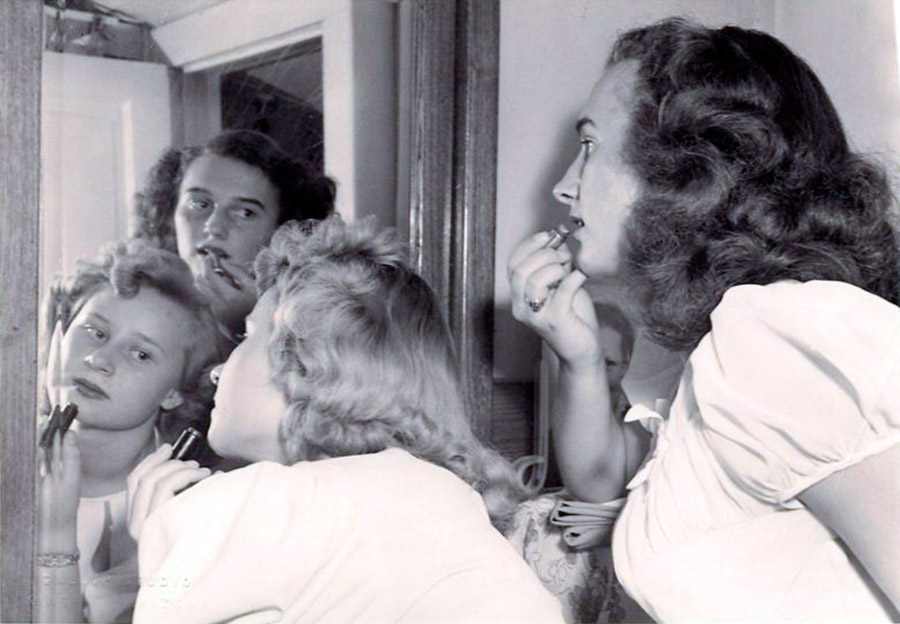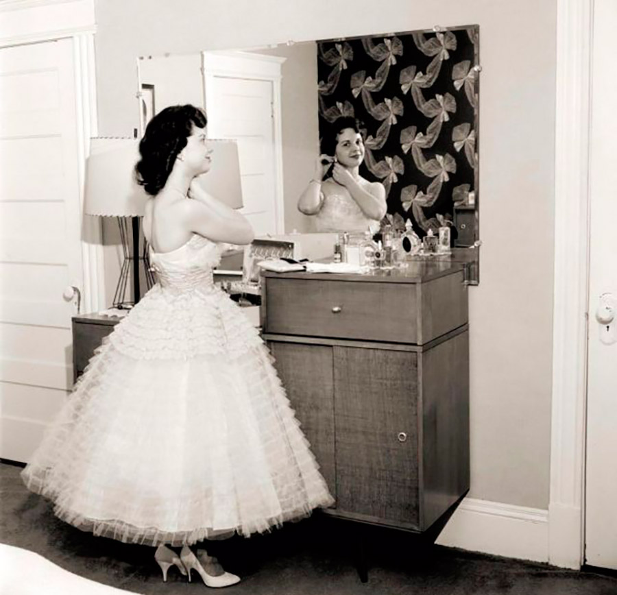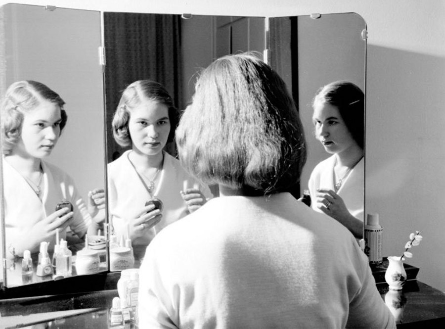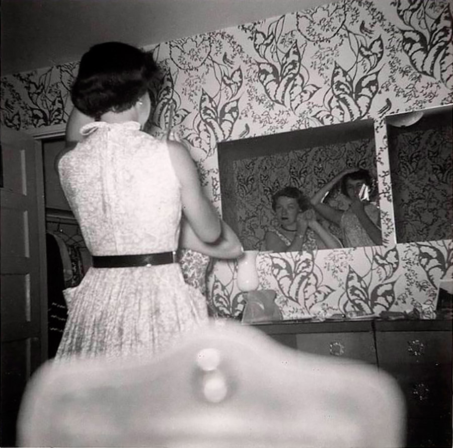 stylehub.techinfus.com choisi des photos vintage où les filles et les femmes se lissent près des miroirs. Les photographies ont été prises entre 1940 et 1960.
