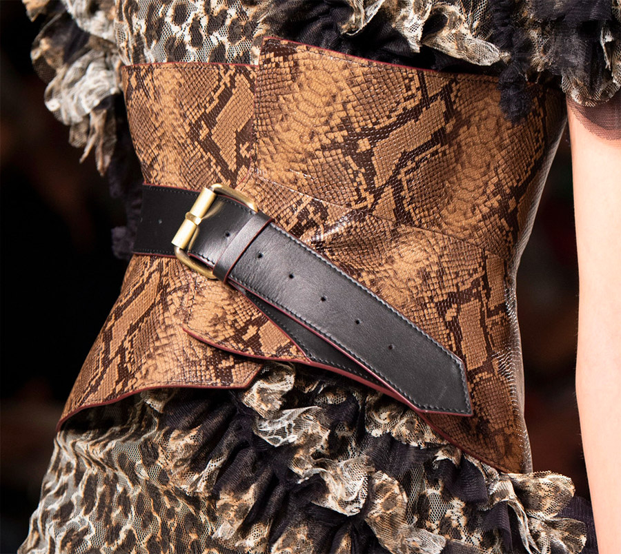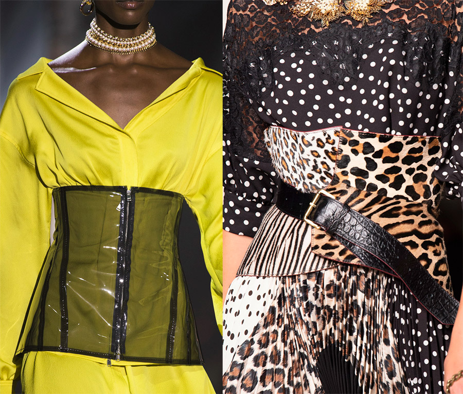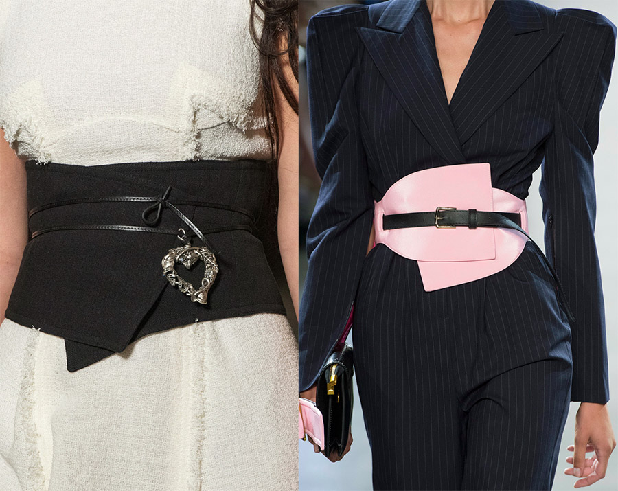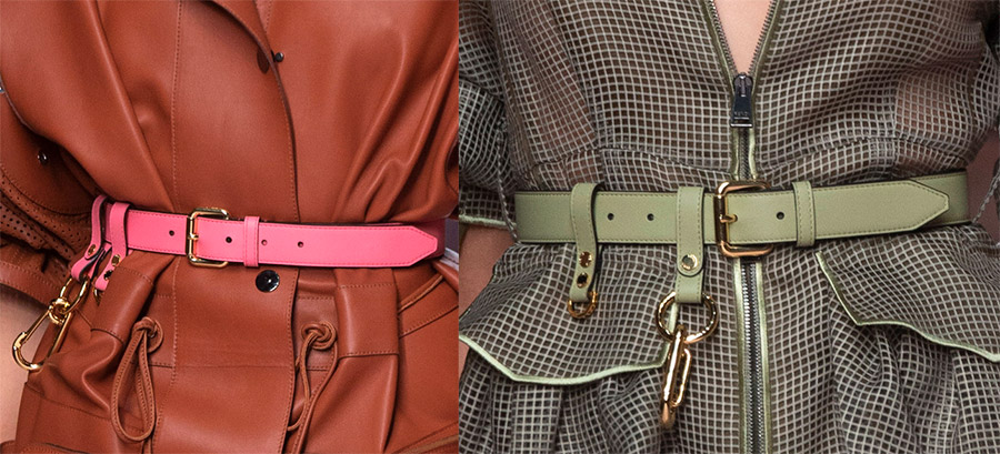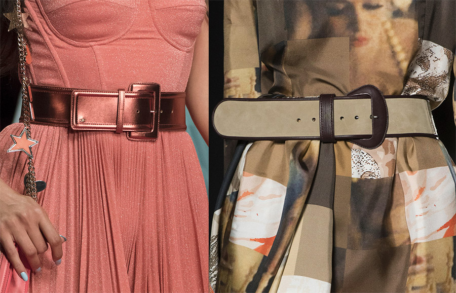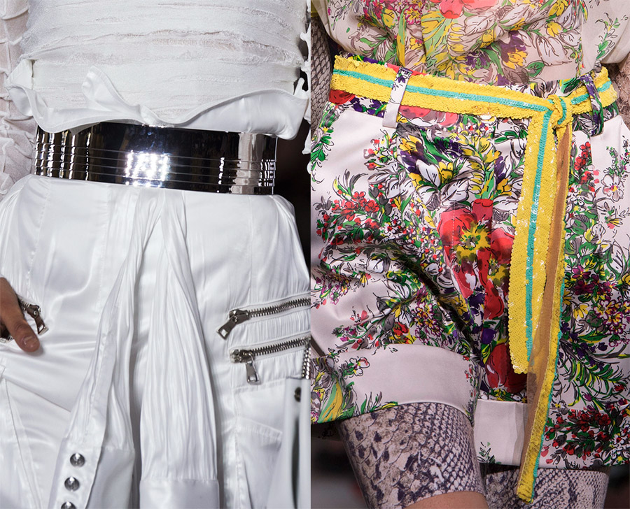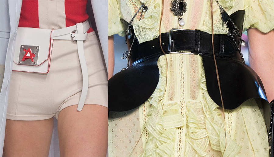 Anteprima, Alexander McQueenBoucles, nœuds, strass, chaînes en métal, rivets, œillets, draperies sur textiles et de nombreux autres éléments et détails sont utilisés comme décoration pour les ceintures et les ceintures de la nouvelle saison. Ou vous pouvez mettre une ceinture sans boucle, en vous limitant aux boutons ou autres attaches.