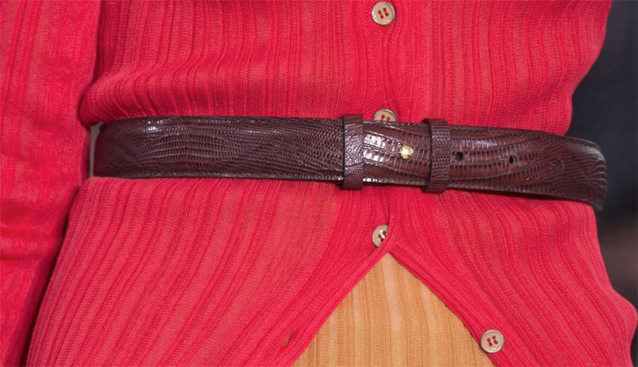 Antonio MarrasLes inscriptions sur les ceintures sont l'une des tendances marquantes de la nouvelle saison. Nous continuons à utiliser la ceinture en conjonction avec des petits sacs.