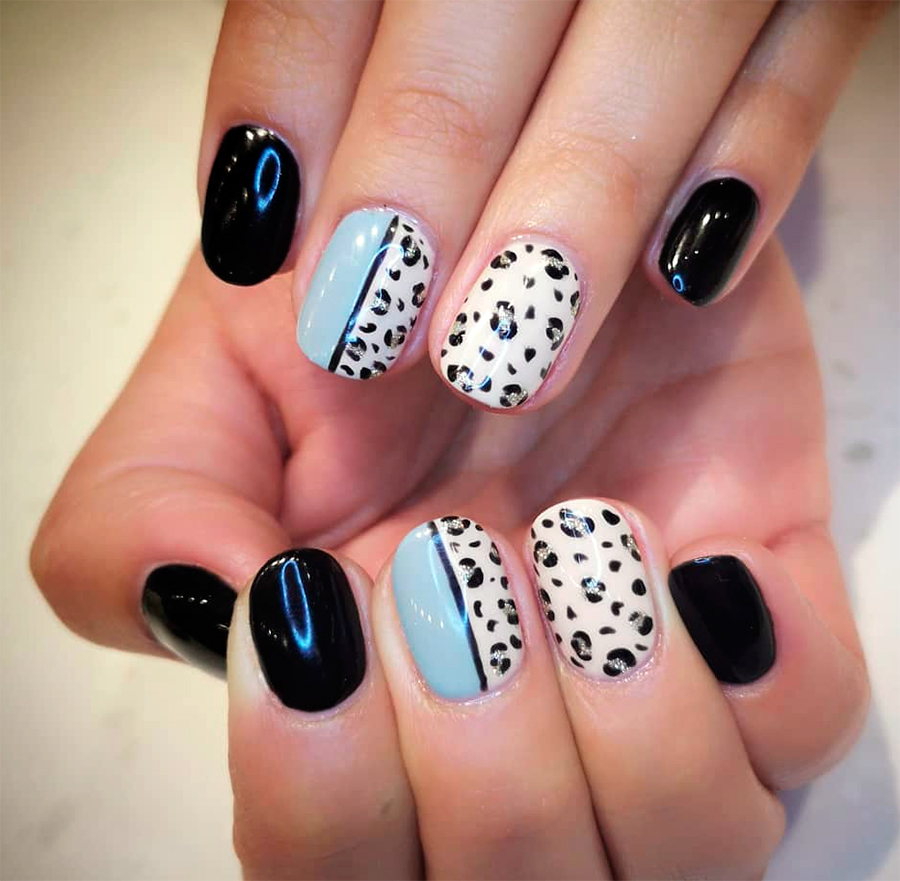 En plus du léopard, la manucure aux lignes parfaitement nettes est désormais à la mode, ici vous pouvez envisager l'imprimé zébré. Et le dessin de vache est également populaire. L'empreinte d'une vache sur les ongles semble le plus souvent maladroite et tout est compréhensible ici. La vache est un animal merveilleux, elle est très utile, mais si vous comparez la vache et le léopard, qui est le plus respectueux et admiratif ? De plus, les associations avec une vache ou un chat carnivore sont très différentes.