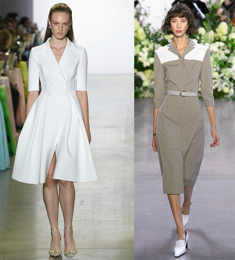 Dans un avenir prévisible, il restera: des robes monophoniques strictes pour le bureau, à la grecque, des robes chemises, des modèles A-line, des robes d'été de type bureau et plage, des modèles droits, une robe portefeuille avec une emmanchure américaine, des robes polo. L'asymétrie ne disparaîtra également nulle part, mais se développera. Lors de l'achat d'une robe, regardez le tissu, les tissus naturels sont toujours préférables aux synthétiques.