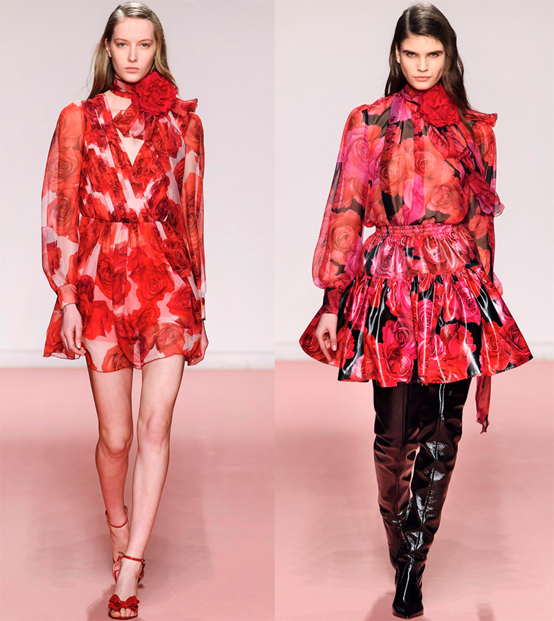 BrognanoCependant, si vous êtes sûr d'avoir besoin d'une rose, vous devez vous rendre dans la collection Blumarine. Ici, vous trouverez toujours ces fleurs, car la créatrice Anna Molinari elle-même les adore non seulement, mais les cultive également. Et elle décore aussi les jardins avec eux, ils l'appellent comme ça - la reine des roses. Toujours à la fin du spectacle, elle sort avec un bouquet de ses roses. Mais les roses de ses tenues peuvent être en tissu ou en imprimé. Le choix est possible pour tous les goûts.