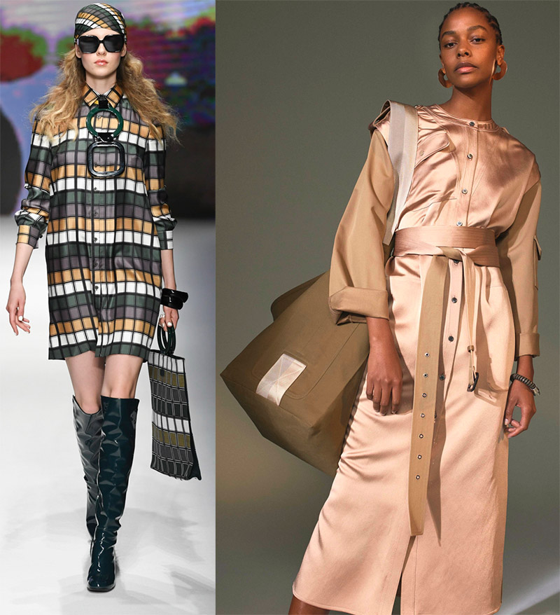 saisons... Dans une robe chemise classique, les manches longues sont toujours avec des poignets. Maintenant, toutes les limites des classiques sont effacées - tout est permis, mais l'attache qui longe la robe du décolleté au bas ou à la taille est sûre d'être là.