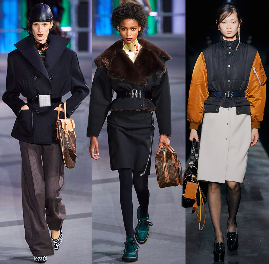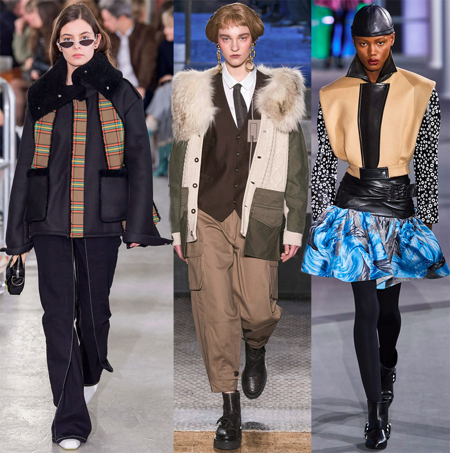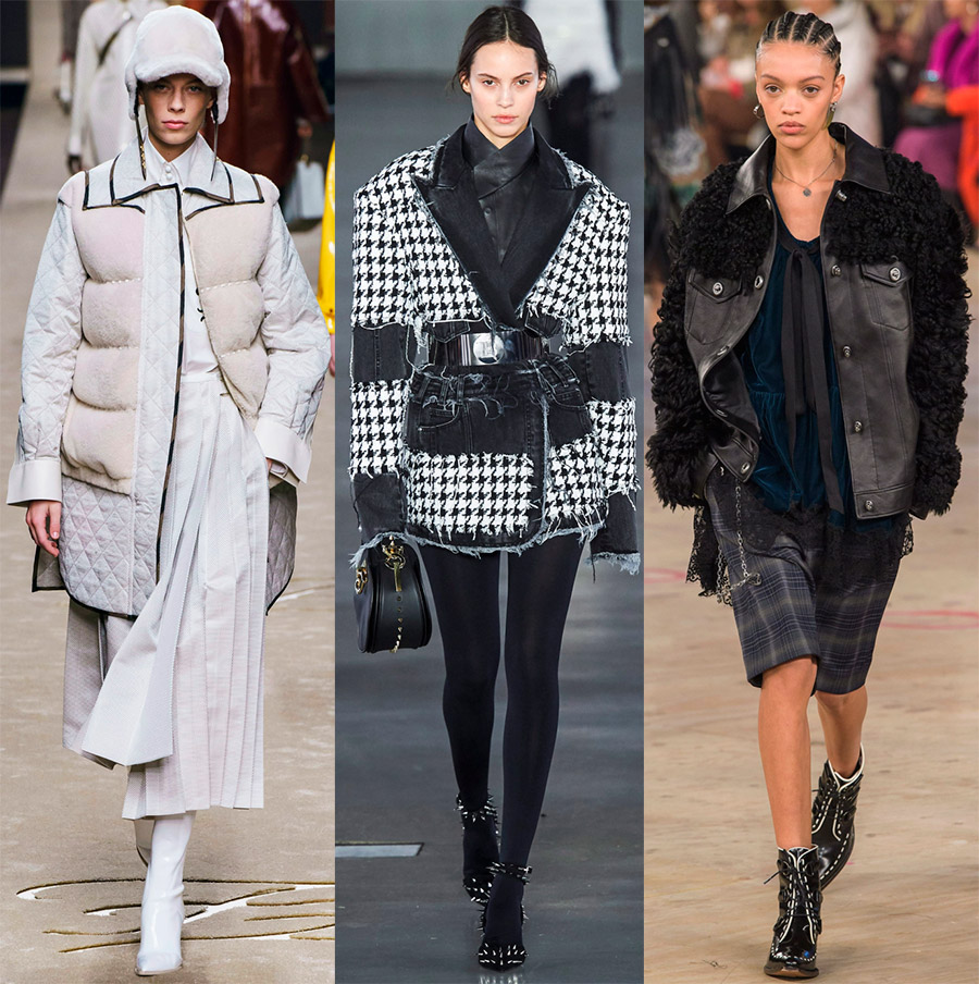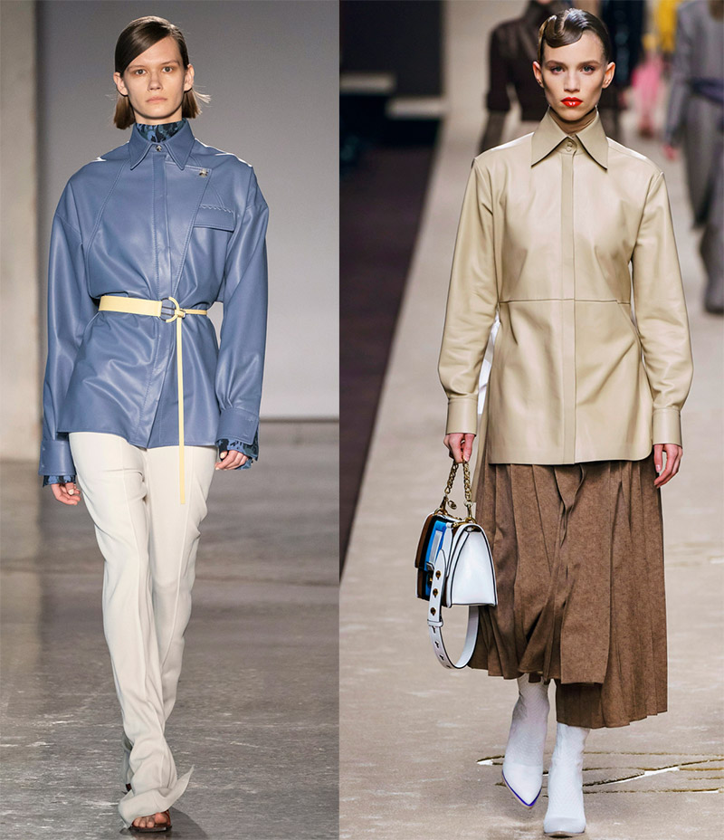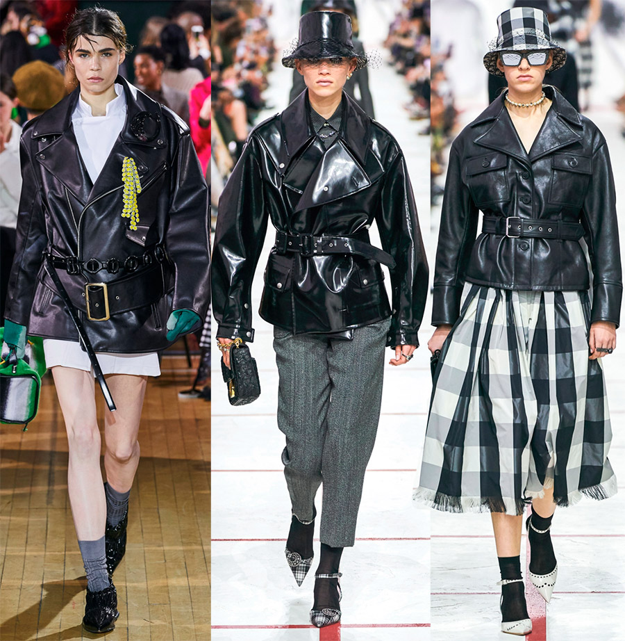 Les vestes en cuir diffèrent par la texture et l'habillage du cuir, les belles couleurs, les finitions, y compris la fourrure, qui peuvent être à la fois à l'intérieur et à l'extérieur. Blousons, blousons en cuir, doudounes et matelassées, les blousons peuvent être en cuir... On trouve surtout de nombreux blousons en cuir dans les collections de Tods, Hermès, Louis Vuitton, Longchamp, Alexander McQueen, Altuzarra,...