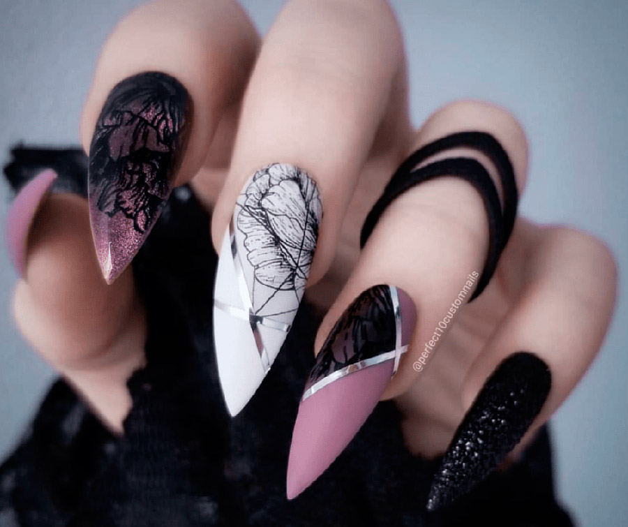 Vous pouvez combiner les couleurs de différentes manières, selon l'idée que vous souhaitez véhiculer. De simples ongles noirs complèteront le look dans le style gothique. Si vous ajoutez un peu de rouge sur le vernis noir, vous obtenez vos ongles avec des taches de sang, ce qui créera un look plus sinistre.