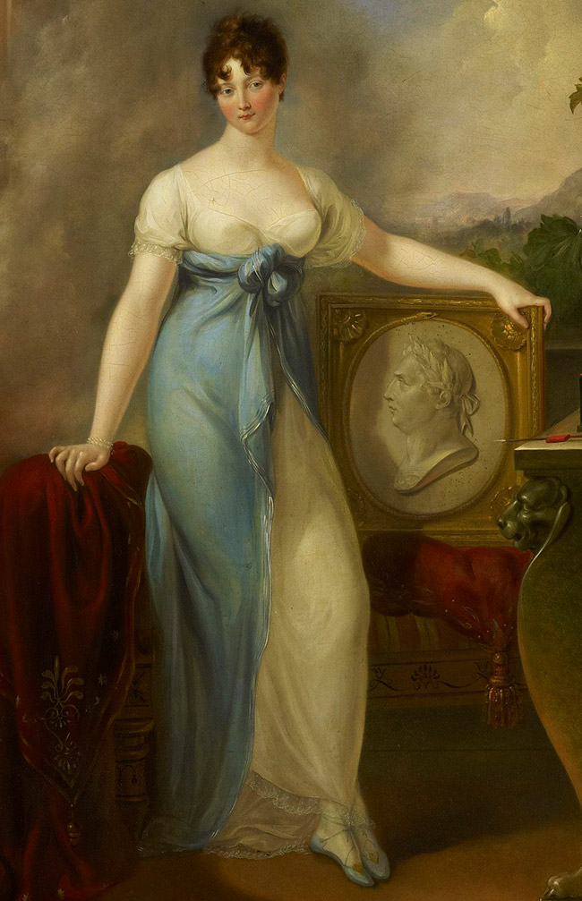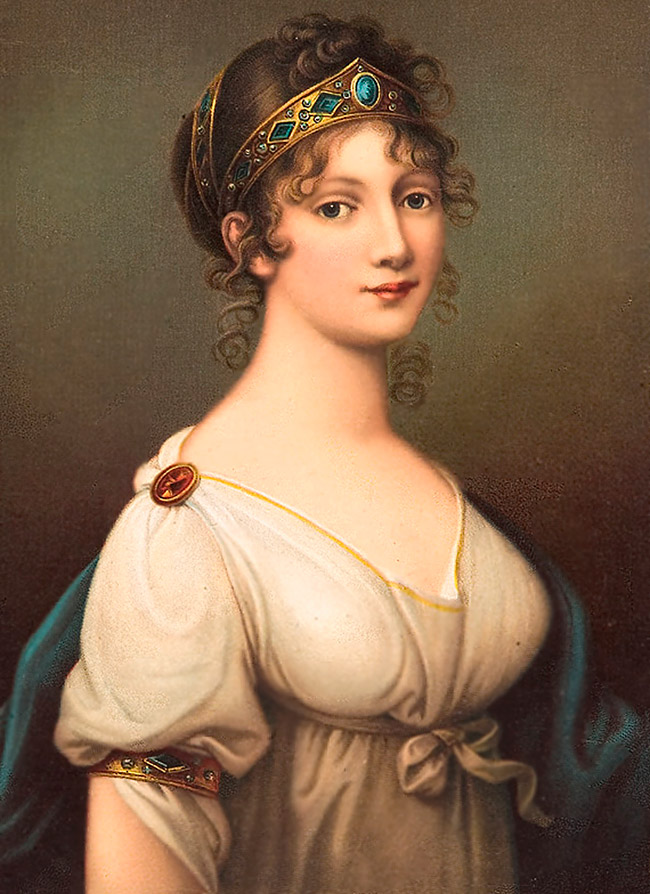 Les camées, les bracelets, les broches et diverses épingles à cheveux étaient populaires. Les cheveux scintillaient de mèches de perles qui s'accordaient parfaitement avec la blancheur de la peau. Elle aimait particulièrement les bijoux de Madame Talien. On dit qu'elle avait une belle peau et des yeux noirs veloutés. Une autre beauté de cette époque était Madame Récamier. Il y avait peu d'ornements dessus, ce qui lui donnait du naturel et du charme.