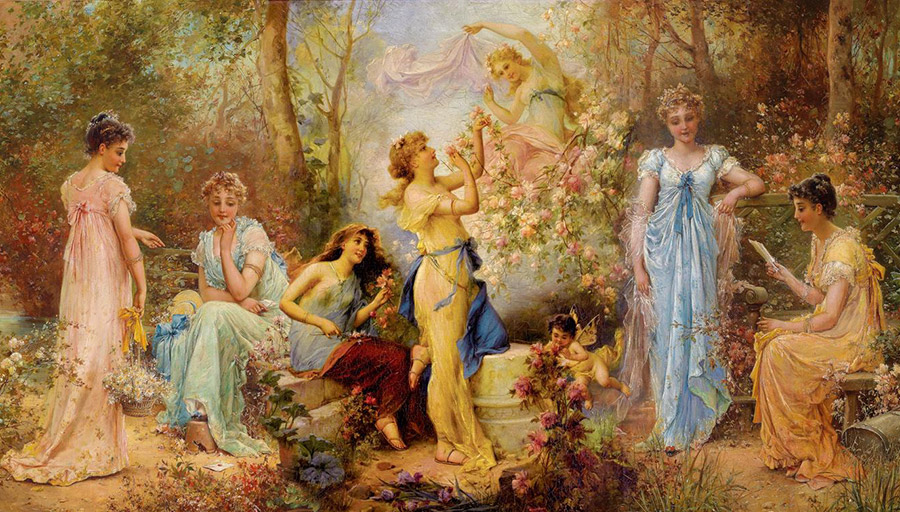 Les dames s'efforçaient de ressembler aux déesses grecques, qu'elles admiraient à travers la contemplation de la peinture et de la sculpture, ainsi que dans leur imagination en lisant de la poésie. Les beautés de Paris recherchaient une extraordinaire blancheur de leur peau, leur donnant une ressemblance avec les statues grecques en marbre. A cette époque, Madame Récamier, Madame Talien et Joséphine Beauharnais devinrent l'incarnation idéale de l'étendard de la beauté.
