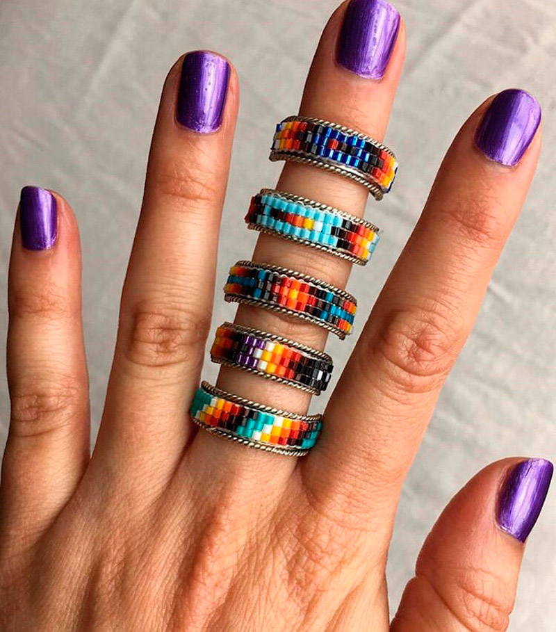 En plus des métaux et des pierres précieuses, les bijoux en cuir, daim, bois, textiles et perles sont d'une grande importance dans ce style. Aujourd'hui, nous avons décidé de faire attention uniquement aux bijoux à la main. Les bagues sont le plus souvent en argent avec des pierres précieuses, mais les bracelets peuvent être faits de divers matériaux. Les bracelets ouvrent un espace pour la créativité de vos propres mains, ils peuvent être tissés à partir de perles et de cuir, ou découpés dans du bois.