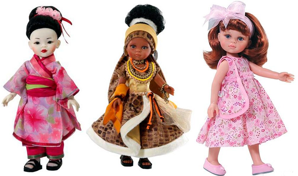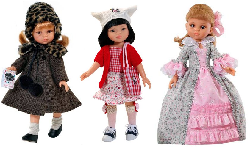 Parmi les poupées Paola Reina, il y a des petites filles de différentes nationalités - des européennes aux femmes africaines ; les adorables filles japonaises avec des fleurs de sakura dans les cheveux et des kimonos colorés sont également assez impressionnantes. De plus, dans les dernières collections de Paola Reina, des poupées-copies exactes de l'infante Leonor (fille du prince héritier d'Espagne) et de Cléopâtre Stratan, la plus mignonne et la plus petite chanteuse moldave de 10 ans, qui ont déjà réussi à conquérir le monde retentissant renommée, sont apparus.