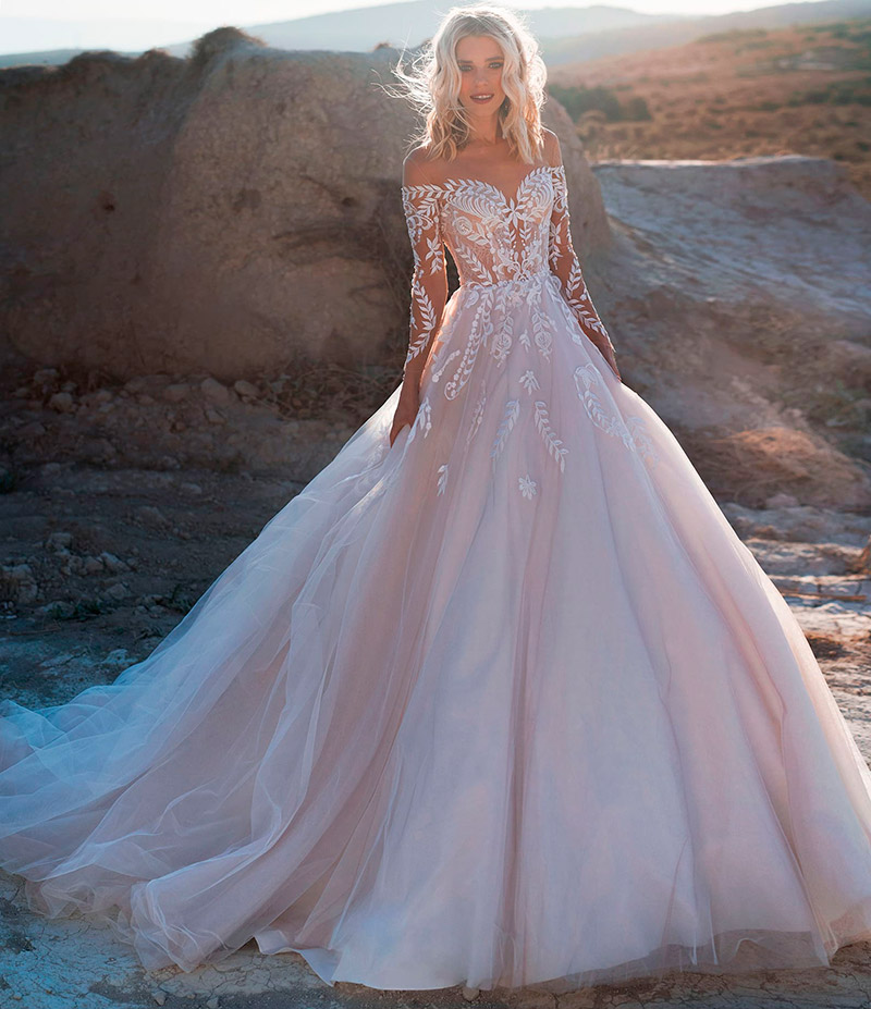 L'un des plus tendance en cette saison des mariages. Le rose poudré fait référence aux tons naturels et nude qui, grâce à leur naturel et à leur beauté discrète mais très spectaculaire, gagnent de plus en plus le cœur des filles.