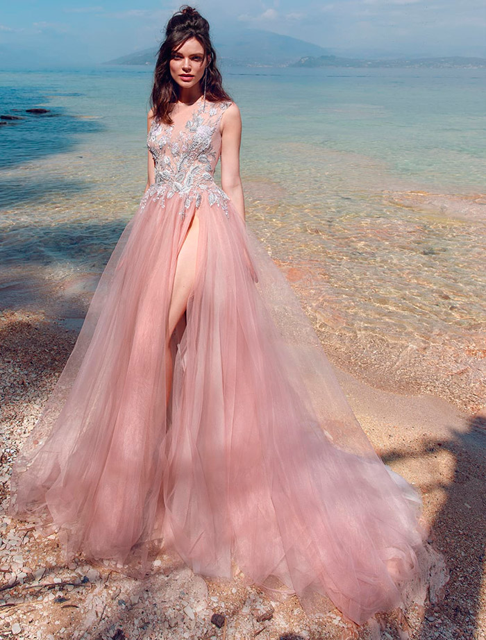 Les robes de mariée roses sont les plus harmonieuses pour les jeunes mariées. Cette nuance parle de leur douce timidité, créant des looks sophistiqués et une ambiance romantique. Cependant, il convient également aux filles plus matures qui veulent être élégantes. Dans ce cas, vous pouvez regarder de plus près les modèles avec une nuance cendrée ou poudrée.