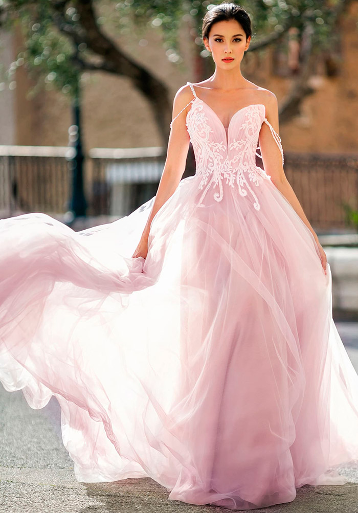 Les modèles roses conviennent aux mariées qui préfèrent les classiques, mais souhaitent y ajouter des accents de couleur. Ces nuances donnent de l'expressivité aux looks de mariage traditionnels, tout en conservant leur délicatesse et leur légèreté.
