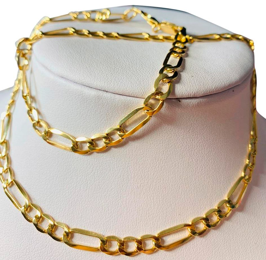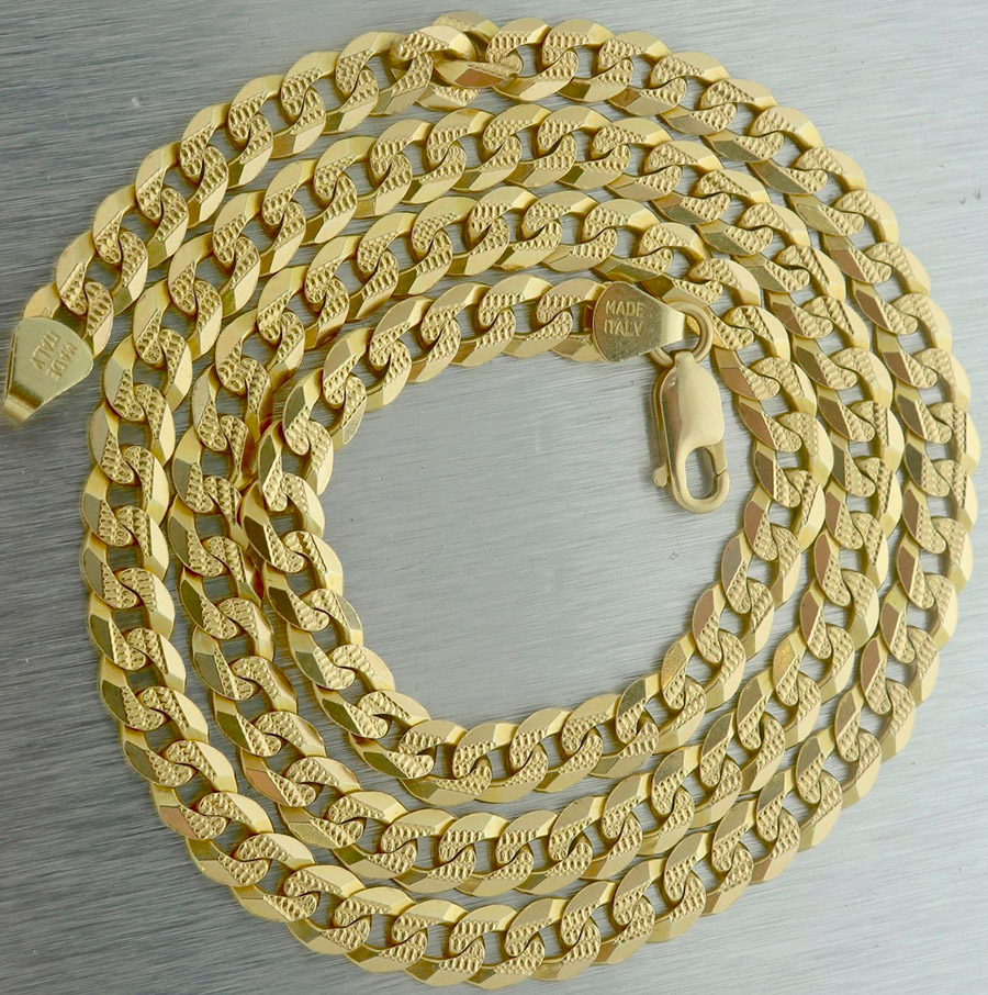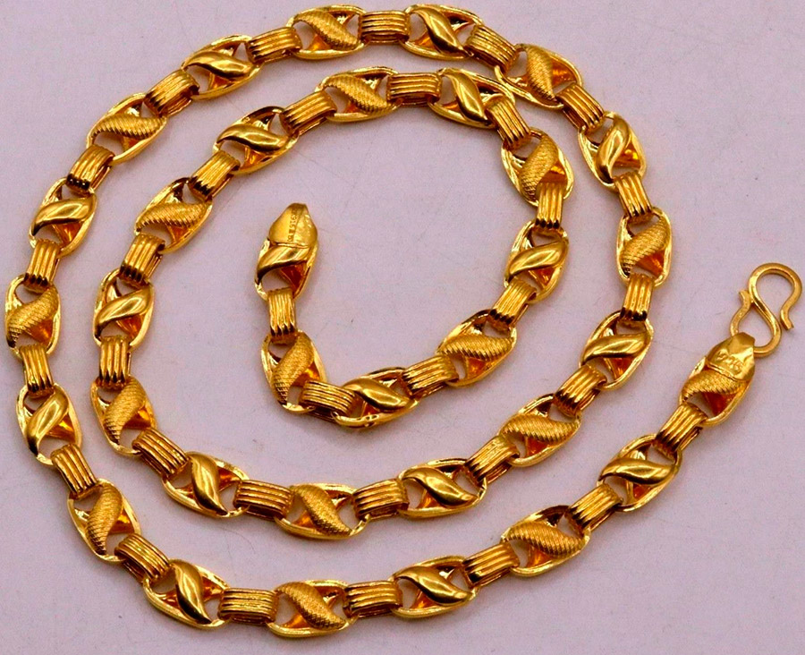 Moins chères, mais apparemment volumineuses et imposantes, sont les chaînes en or "creuses". Mais c'est aussi leur inconvénient, car si le lien est mal plié, une rupture peut se produire. Malheureusement, il sera très difficile de restaurer une telle chaîne.