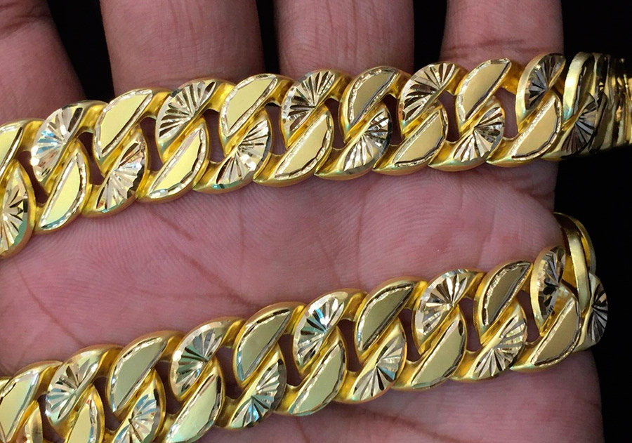 Très peu de temps s'est écoulé depuis les années 1990. Des éléments de style des années 90 apparaissent déjà dans la mode moderne, mais les chaînes en or épaisses peuvent encore provoquer des impressions plus douteuses. Puis, dans les années 1990, les chaînes ont rapidement pris du poids. Ces bijoux étaient portés par des personnes qui ne méritaient pas le respect, c'est pourquoi les chaînes de 200 grammes sont devenues une sorte de symbole des taureaux des années 90. Alors 200 grammes n'était pas la limite, mais au contraire le début d'une sérieuse décoration. Il y avait des exemplaires de 500 à 800 grammes et même d'un kilogramme ou plus.