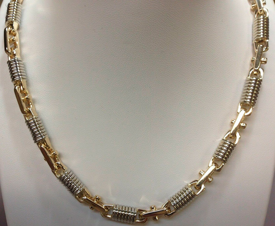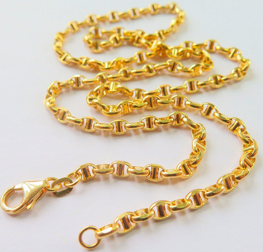 Chaînes en argent doré.Leur coût est bien inférieur à celui de l'or, mais ils seront beaux. L'essentiel est d'acquérir une telle chaîne auprès d'un fabricant de réputation fiable, car la couche d'or appliquée sur la surface de l'argent ne doit pas être trop fine.