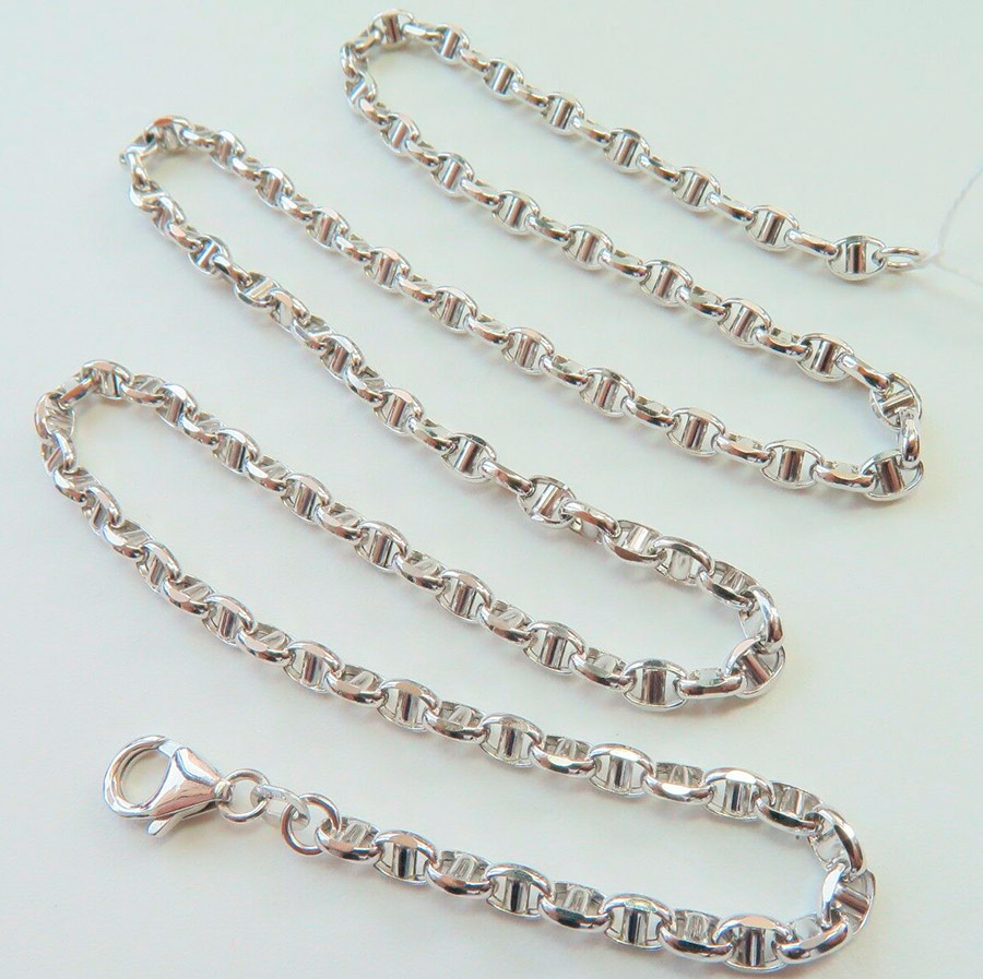 Et aussi l'argent a toujours été apprécié en Russie. Métal blanc, pur et beau, comme la personnification de l'hiver russe enneigé. Les créateurs de bijoux offrent une variété d'options pour le traitement des chaînes en argent. Par exemple, le rhodiage, qui donne brillance, oxydation, noircissement, gravure. Prendre soin de telles chaînes sera beaucoup plus facile.