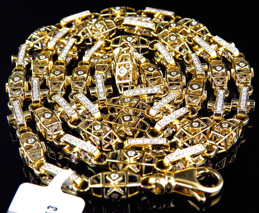 La massivité de la chaîne est obtenue par l'épaisseur du métal à partir duquel elle est fabriquée et divers détails de tissage. Habituellement, chez les hommes de grande taille, les chaînes aux tissages volumineux et complexes sont harmonieusement combinées.