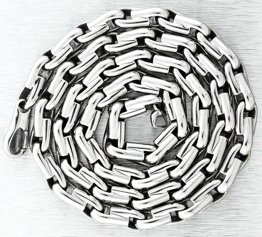 Chaînes en argent. Si une épaisse chaîne en or peut provoquer des associations douteuses, alors c'est plus facile avec de l'argent. Les chaînes en argent n'étaient pas populaires auprès des taureaux des années 90. C'est peut-être pourquoi, même à ce jour, les chaînes en argent sont prioritaires sur les chaînes en or massives.