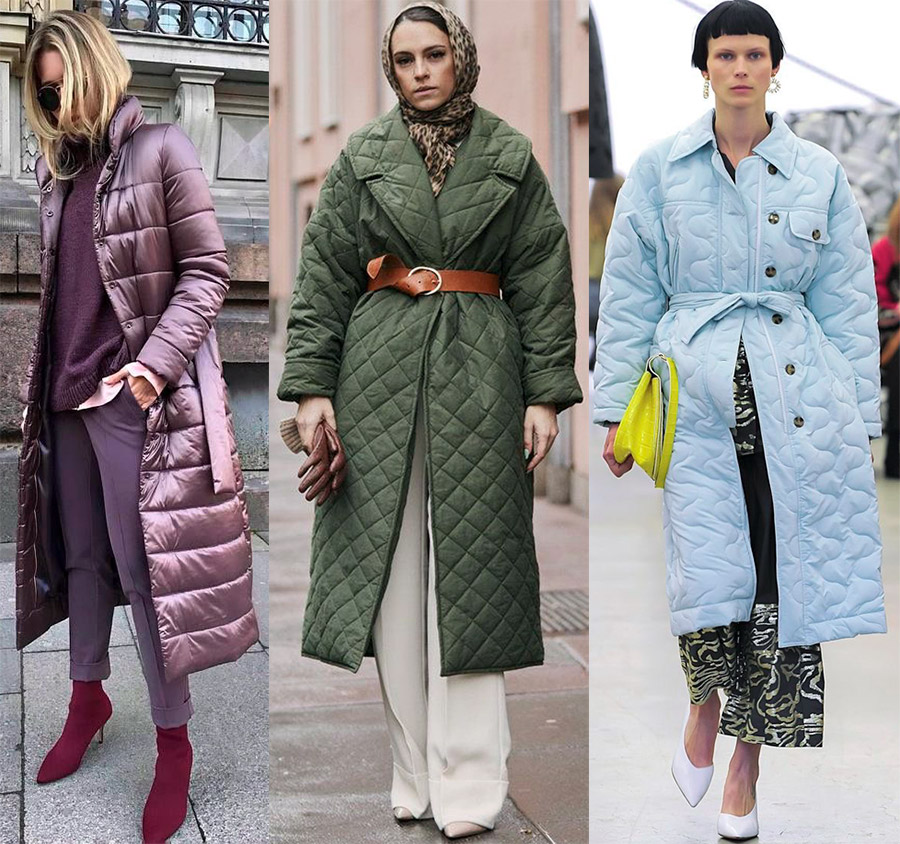 Pour des looks plus business au bureau ou pour des looks féminins avec des chaussures à talons, les doudounes, en forme de manteau-robe, sont parfaites. Lorsque la taille est indiquée, la longueur des jambes est lue visuellement et le chiffre apparaît plus proportionnel. Soit dit en passant, si votre manteau matelassé n'a pas de ceinture, vous pouvez mettre une ceinture en cuir de largeur moyenne sur le dessus - il y aura un look tendance spectaculaire.