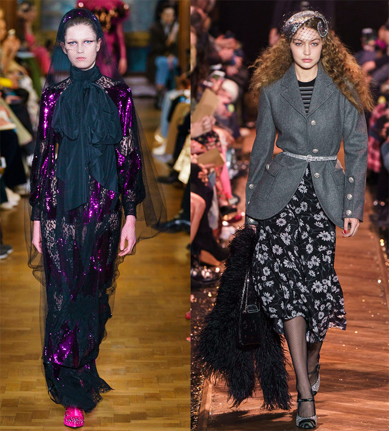 Erdem et Dolce & GabbanaAu XVIe siècle, les voiles disparaissent, seules les Espagnoles aux cheveux noirs brillants les laissent comme une mantille de dentelle noire, jouant avec elle dans la danse et dans la vie, cachant parfois leurs visages, puis les révélant.