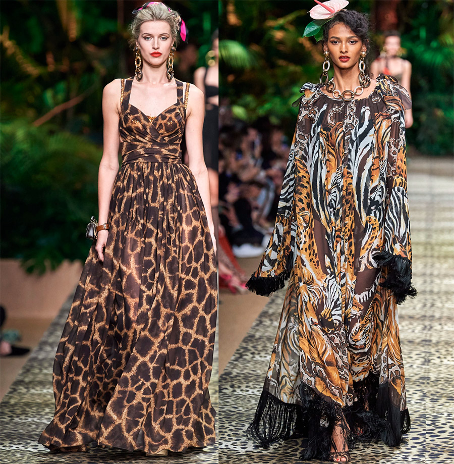 2. Imprimés animaliers. Les créateurs n'oublient pas les imprimés léopard et autres animaux. Dans la nouvelle collection, nous voyons un véritable triomphe de beaux léopards, tigres, jaguars et autres beaux habitants de notre planète. Il y a le zèbre et la girafe, mais surtout le léopard. Cet imprimé orne beaucoup de choses, et il est également situé sur le podium lui-même. Certains modèles sont ornés d'imprimés animaliers de la tête aux pieds ; les collants de couleur animale constituent un ajout particulièrement intéressant aux ensembles.