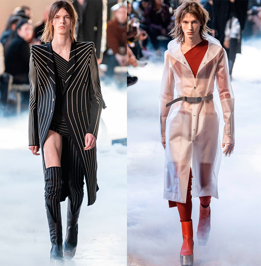 Créant une nouvelle collection, le designer Rick Owens, en plus de sa propre créativité, s'est inspiré des images de David Bowie et des œuvres de l'artiste Joseph Beuys. Par conséquent, les vêtements des modèles rappellent un peu des toiles déchirées et contiennent une certaine dose de folie raffinée.