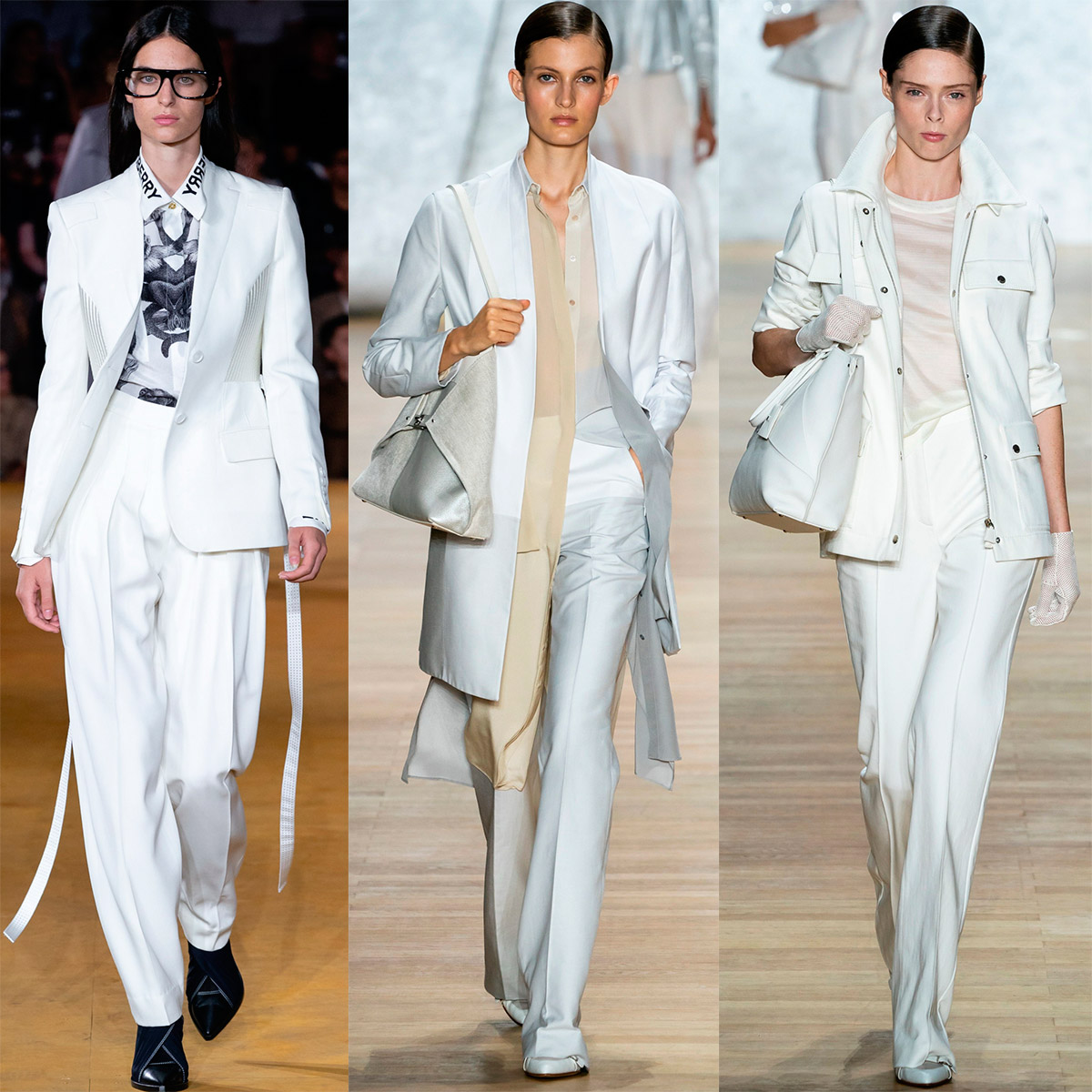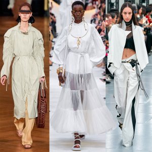 Encore un total look qui est clairement apparu dans les nouvelles collections. Le blanc est perçu comme tout à fait naturel pour l'heure d'été. Cependant, de nombreux concepteurs n'en ont pas seulement profité, mais ont complètement créé des images blanches. Le blanc est des vacances, du sport, de la romance, des voyages.