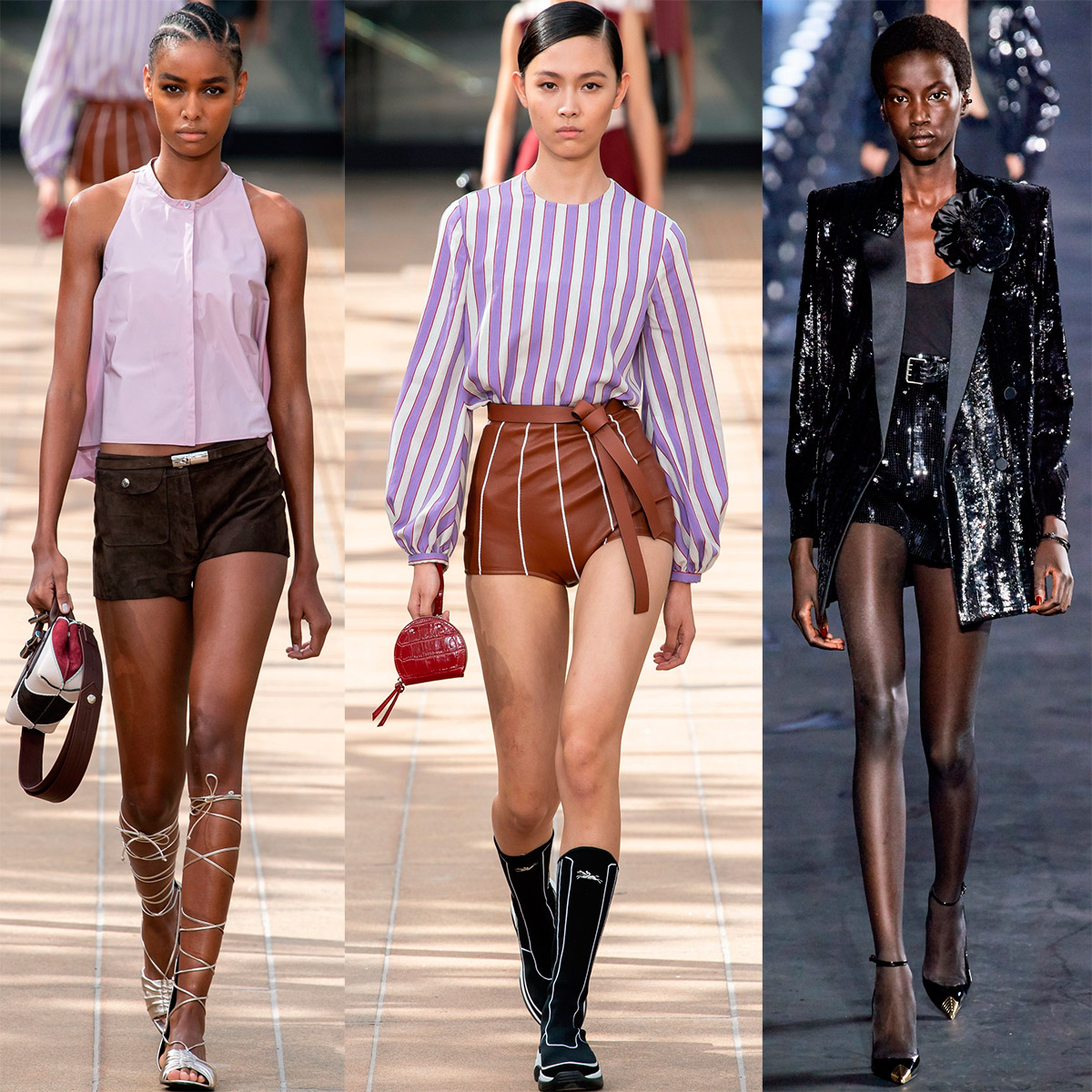 Aux côtés des mini-jupes au printemps et en été, les shorts ultracourts seront pertinents, notamment les shorts en maille qui mettent en valeur toutes les courbes des hanches. Prenez simplement votre temps, examinez votre silhouette et votre âge d'un œil critique et donnez-vous d'abord une réponse - cette option est-elle possible pour vous ? Les jeunes mannequins sur le podium portant ces shorts sont magnifiques et attrayantes. Cependant, toutes les filles n'ont pas une silhouette mince qui vous permettra de mettre une tenue coquette. Il est encore temps jusqu'à l'été, peut-être pouvez-vous faire du fitness ? Mais si quelqu'un a déjà fermement décidé que les mini-shorts ne sont pas pour vous, admirez simplement les modèles originaux.